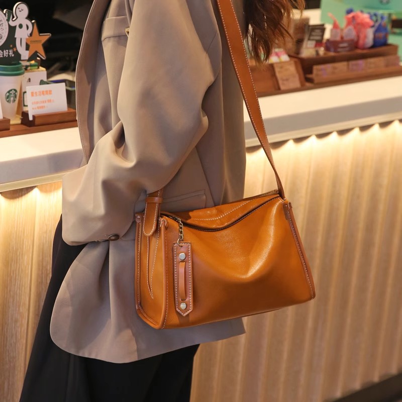 秋款小众设计牛皮腋下包单肩斜挎包手提真皮月牙水桶包女包