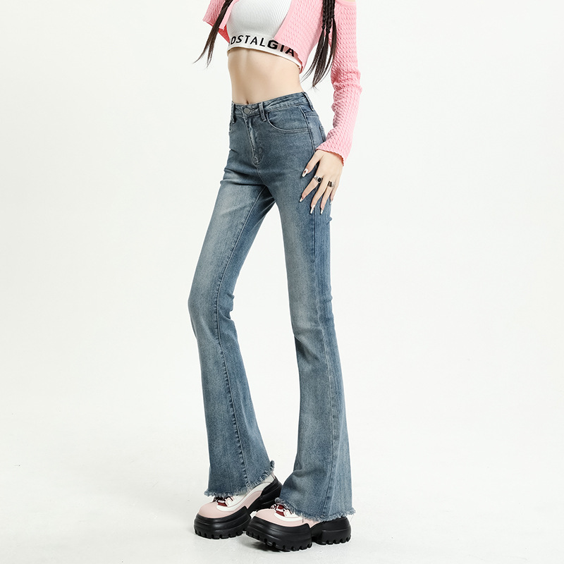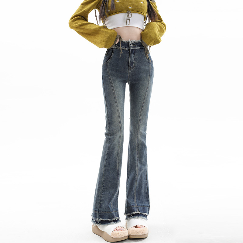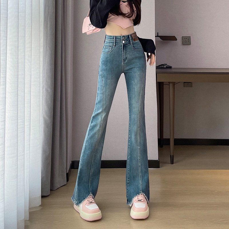 微喇叭牛仔裤女新款设计感小众高腰显瘦高街直筒拖地长裤夏季