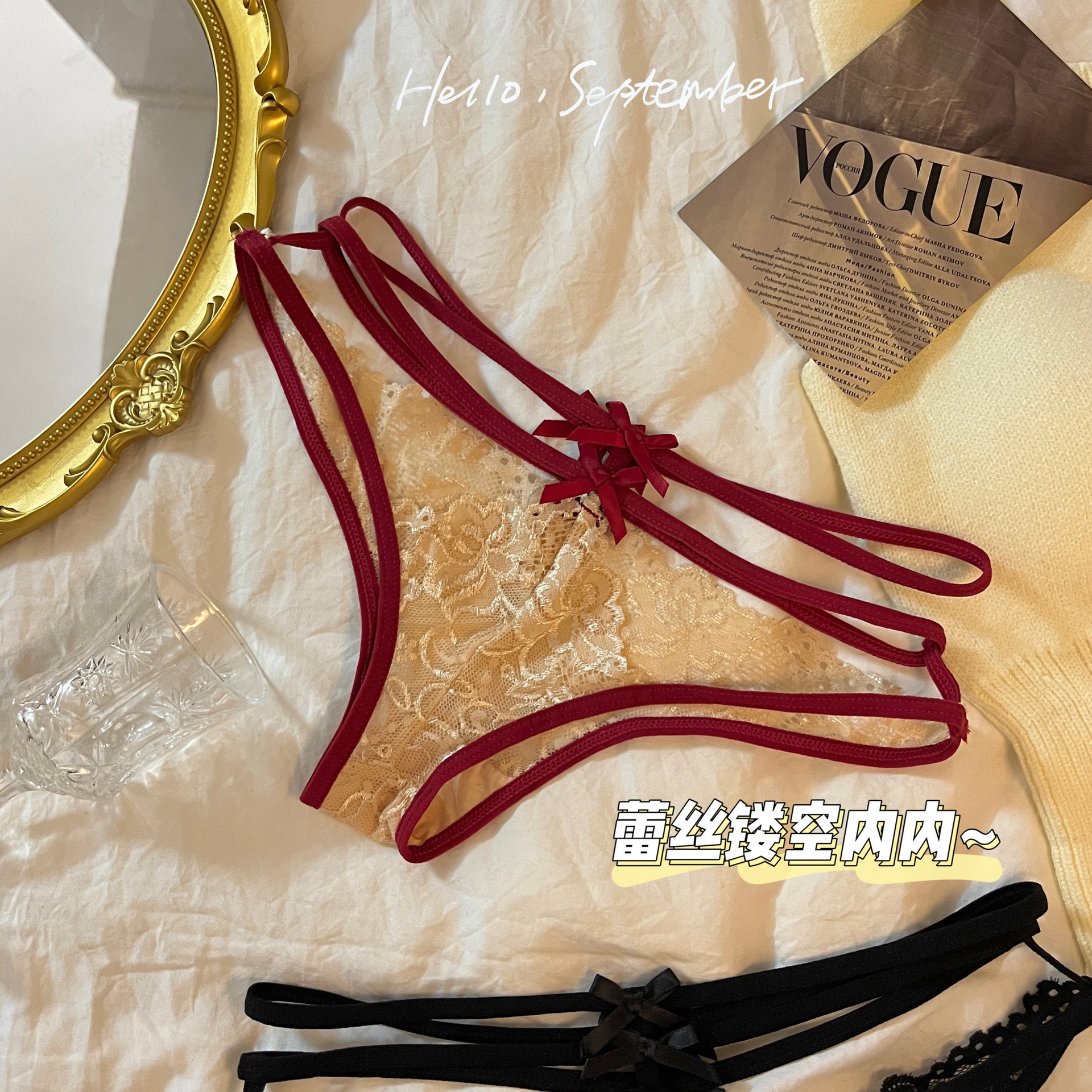 跨境纯欲少女蕾丝内裤女性感细带低腰镂空纯棉裆诱惑蝴蝶结三角裤