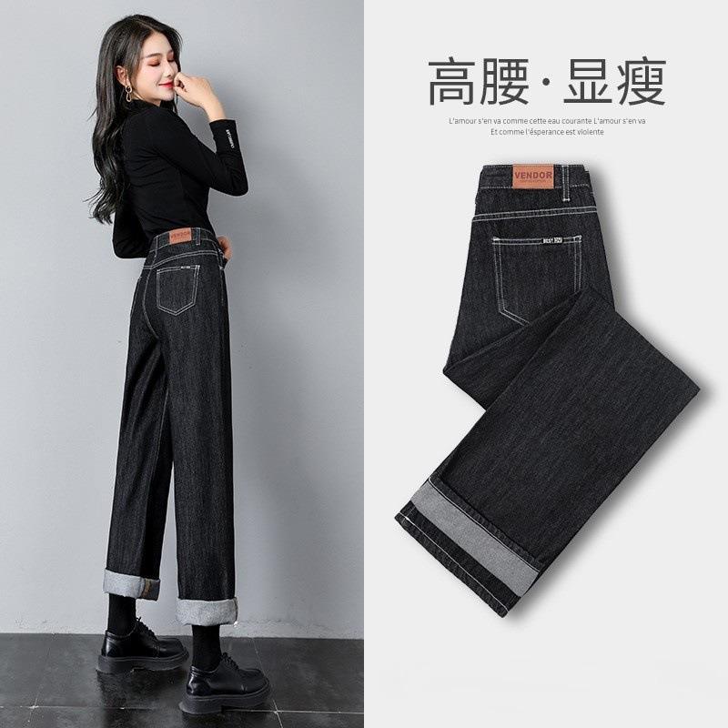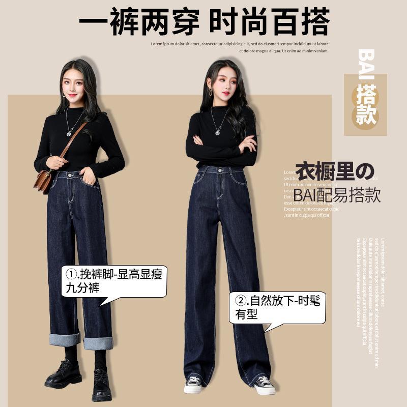 直筒牛仔裤女夏春秋装年新款秋季宽松高腰显瘦小个子阔腿裤子