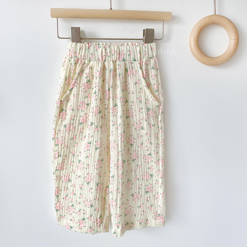 夏季女童休闲裤宝宝洋气儿童个性潮牌韩版清新甜美碎花九分阔腿裤
