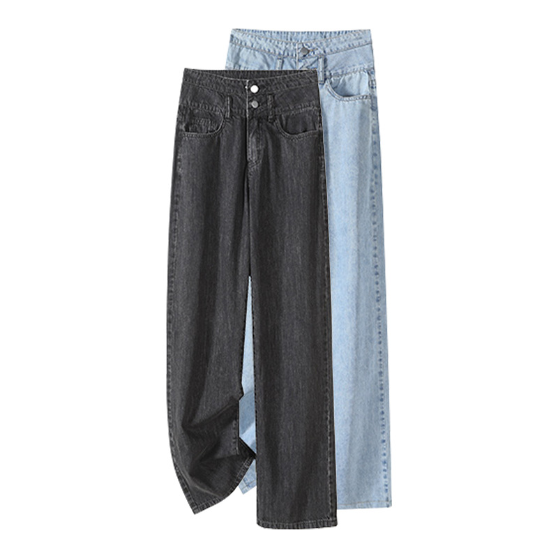 150小矮个子直筒牛仔裤女高腰显高梨形身材宽松阔腿八分xs春夏145
