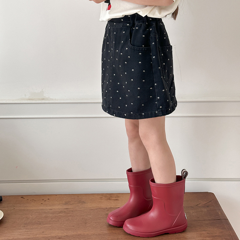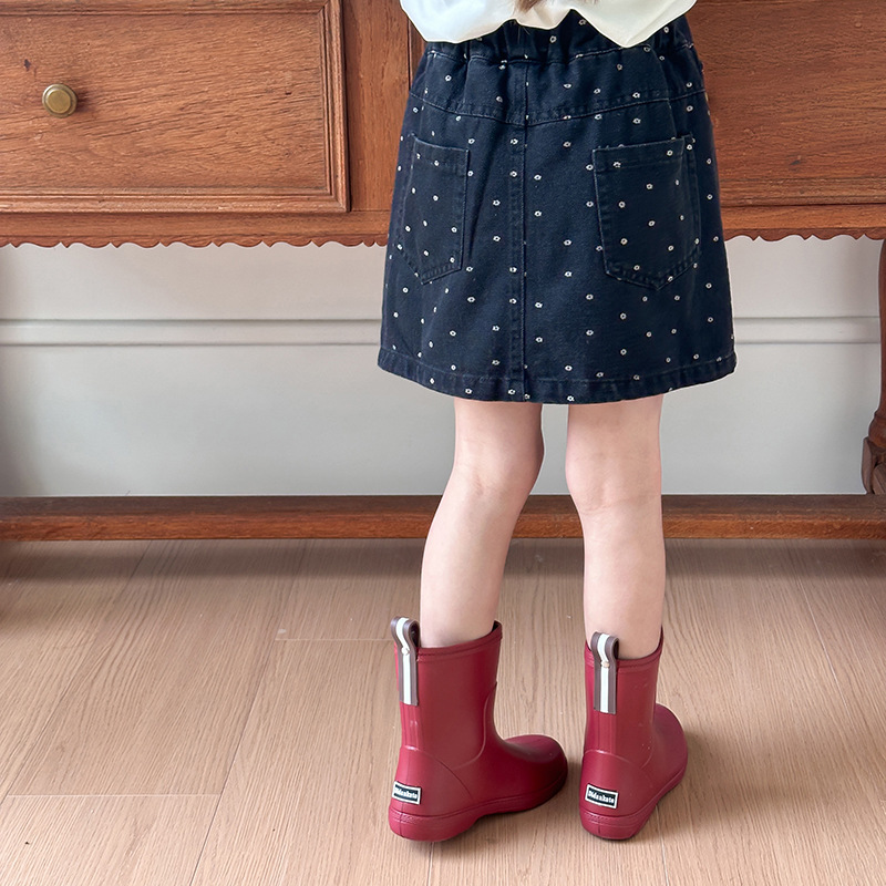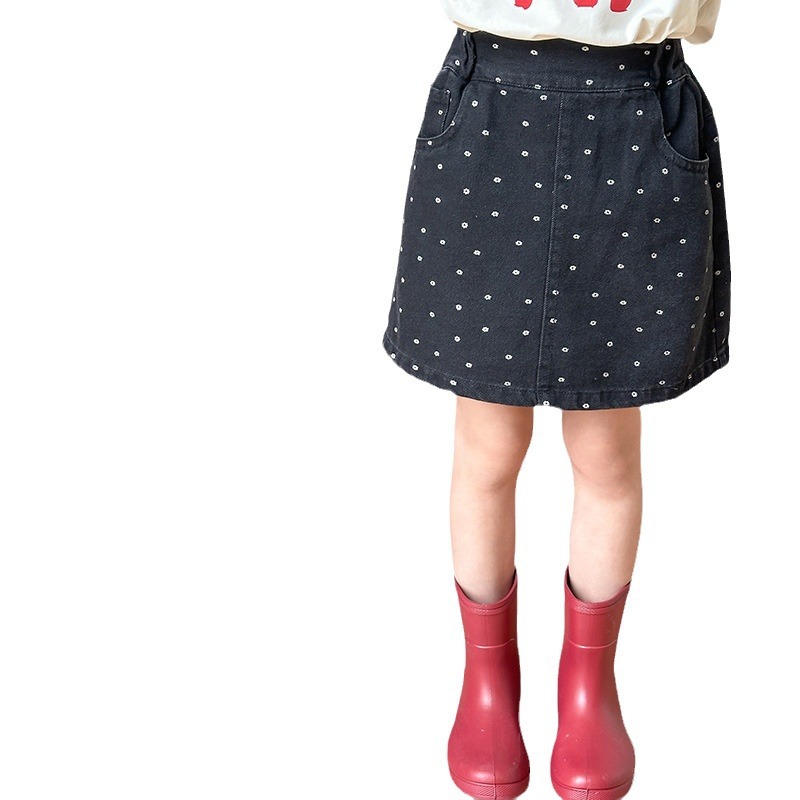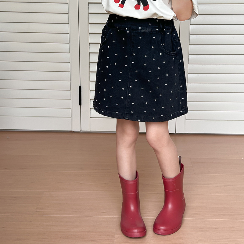 艾摩贝贝儿童含防走光内衬裙子时髦满印包臀牛仔短裙小碎花半身裙