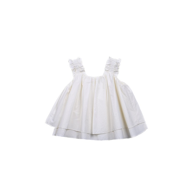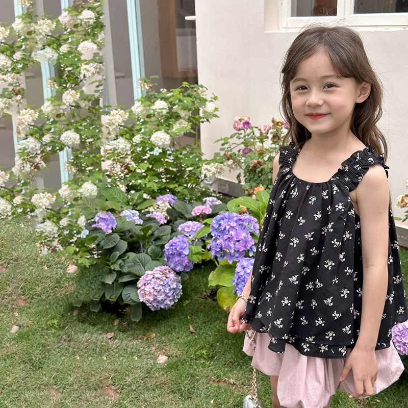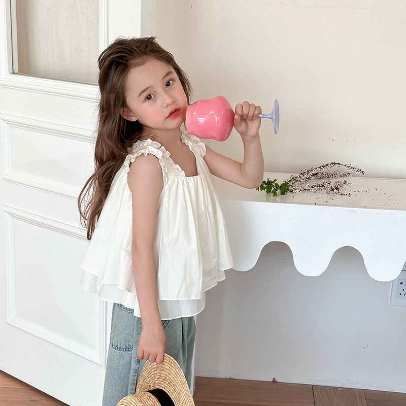 艾摩贝贝女童韩版洋气花边吊带娃娃衫儿童设计感无袖背心衬衫上衣