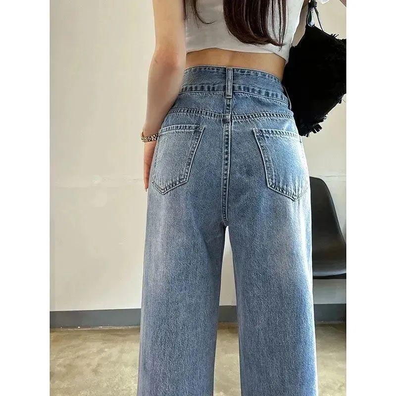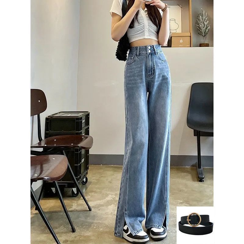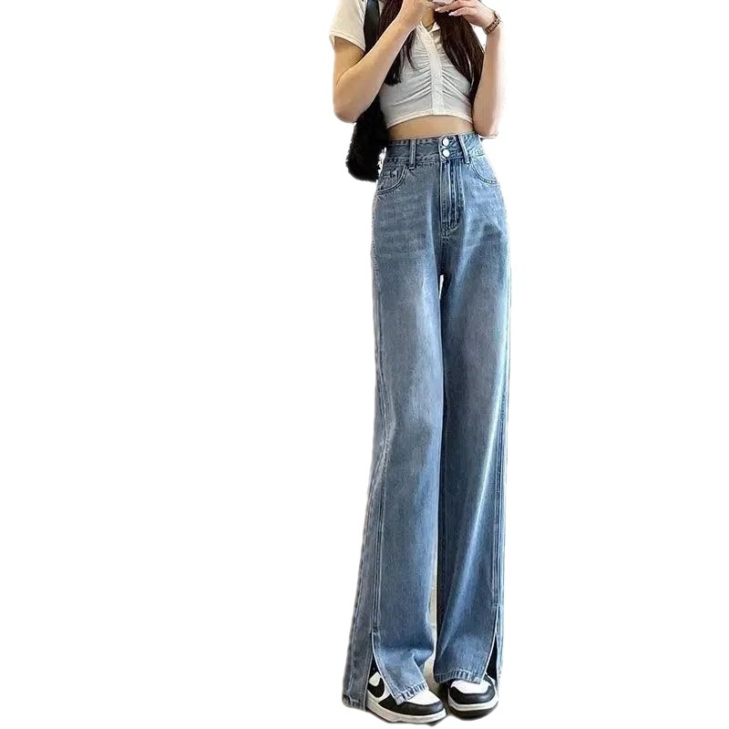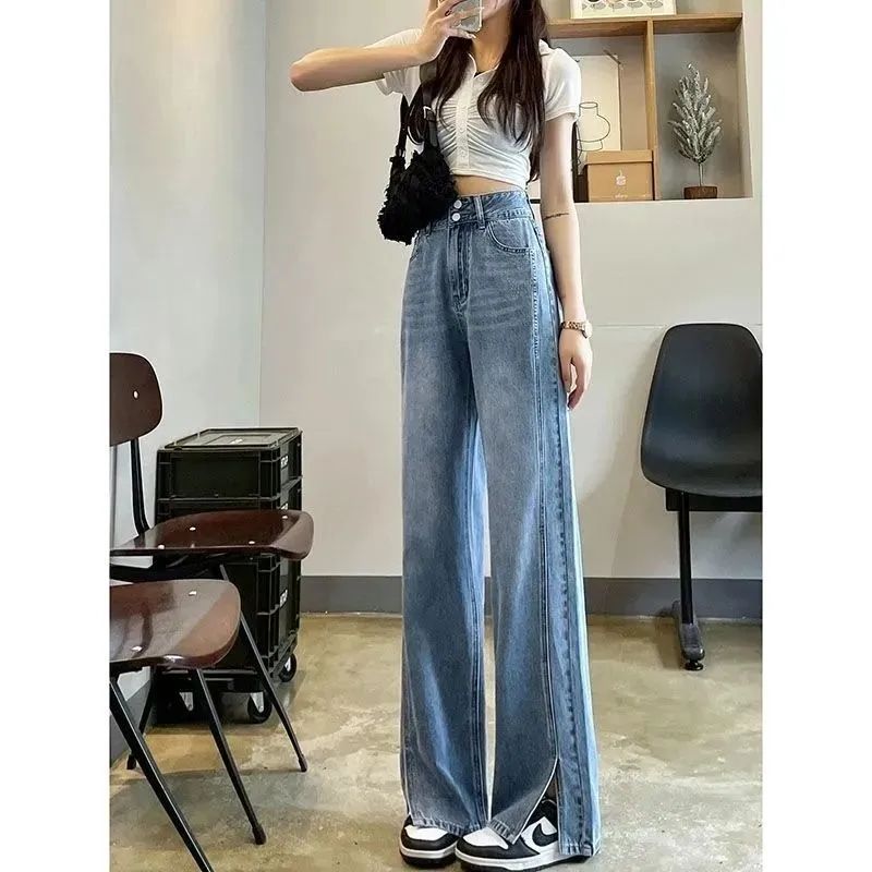 女装新款牛仔裤高腰开叉直筒女春夏薄款显瘦宽松阔腿裤垂女装