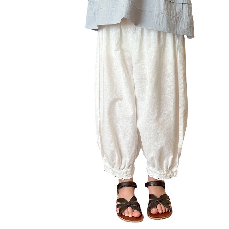 艾摩贝贝高品质女童宝宝舒适精梳棉水洗休闲裤儿童甜美蕾丝花边裤