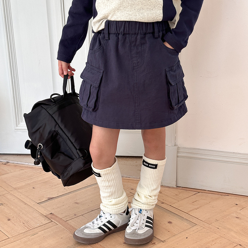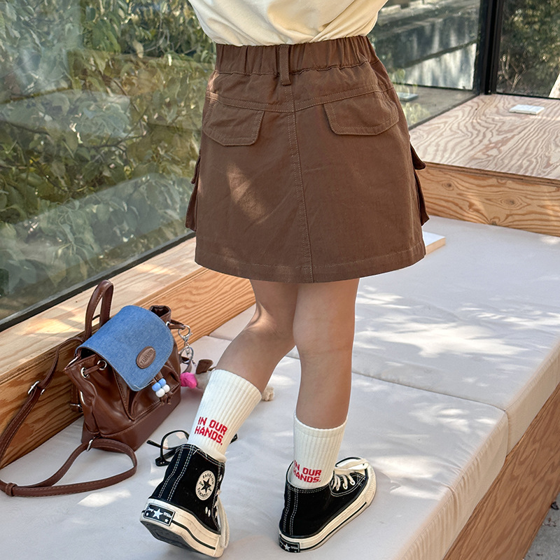 艾摩贝贝童裙女童斜纹棉布半身包臀裙子儿童韩版洋气口袋工装短裙