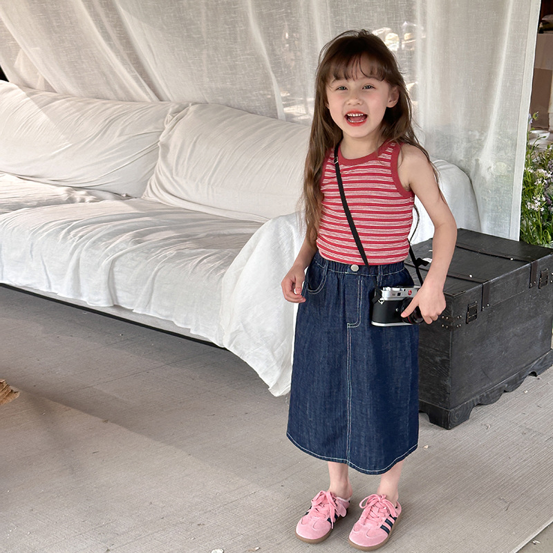 艾摩贝贝儿童条纹小背心夏款中大小女童韩版彩条无袖T恤