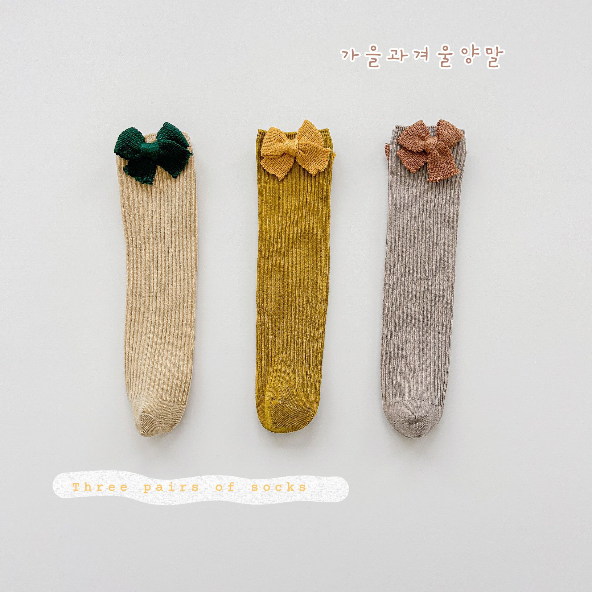 孙姑娘儿童小腿袜春季韩版ins长筒袜双针织蝴蝶结女童堆堆袜