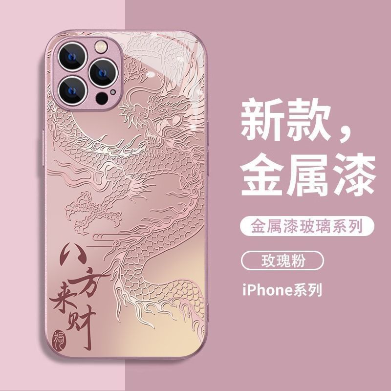 八方来财玻璃适用苹果15/14/13手机壳iPhone12全包11promax