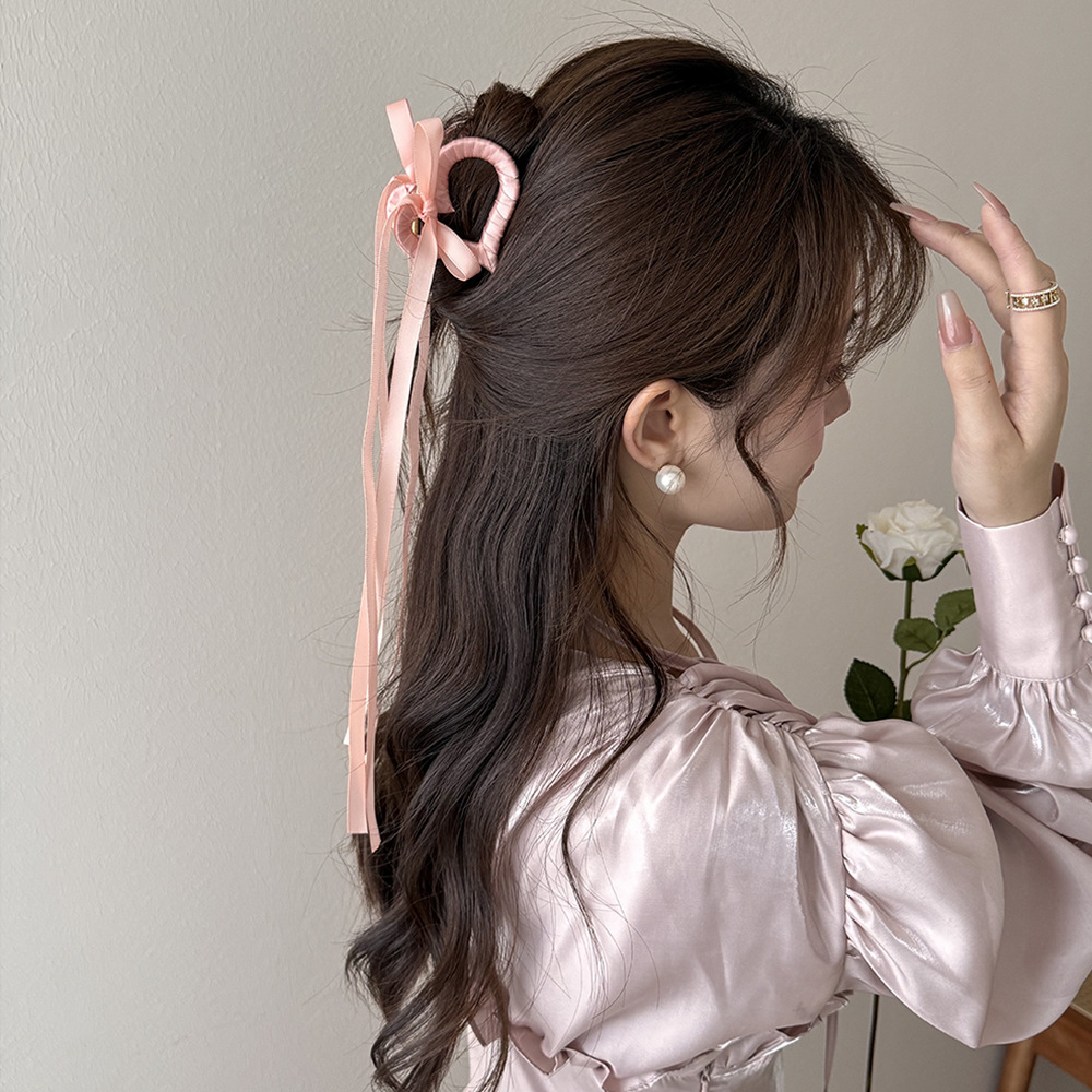 新款蕾丝流苏蝴蝶结抓夹飘带镂空爱心发夹 甜美后脑勺发饰女