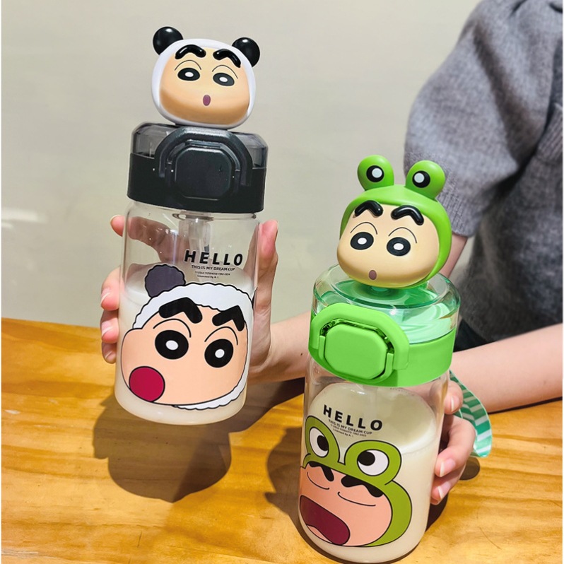 新款蜡笔小新水杯玻璃吸管杯大容量办公室学生高颜值情侣水杯可爱