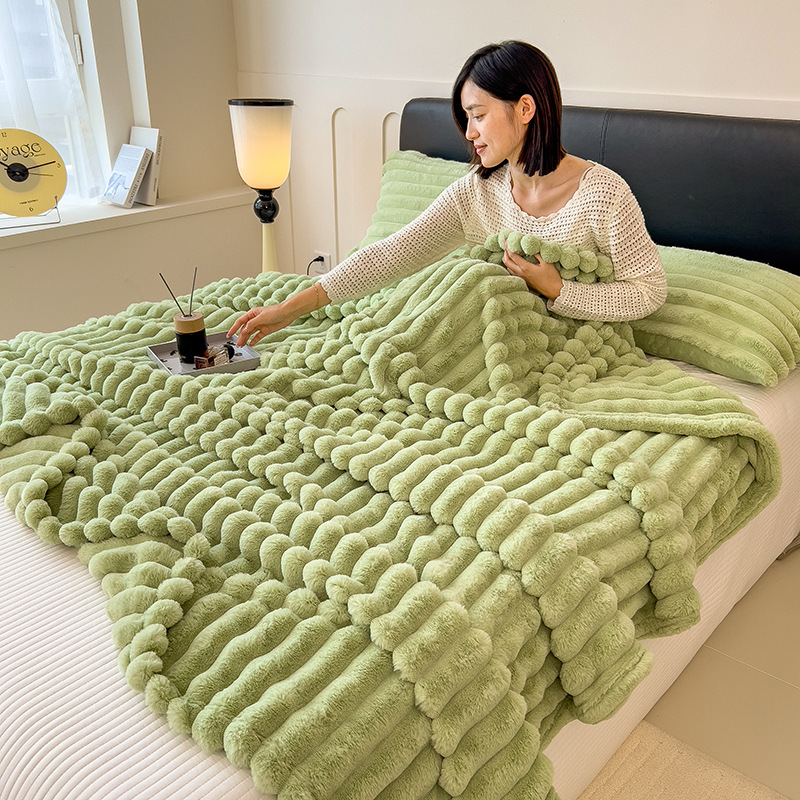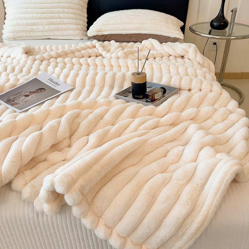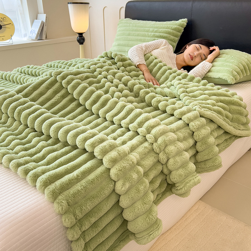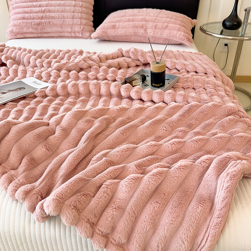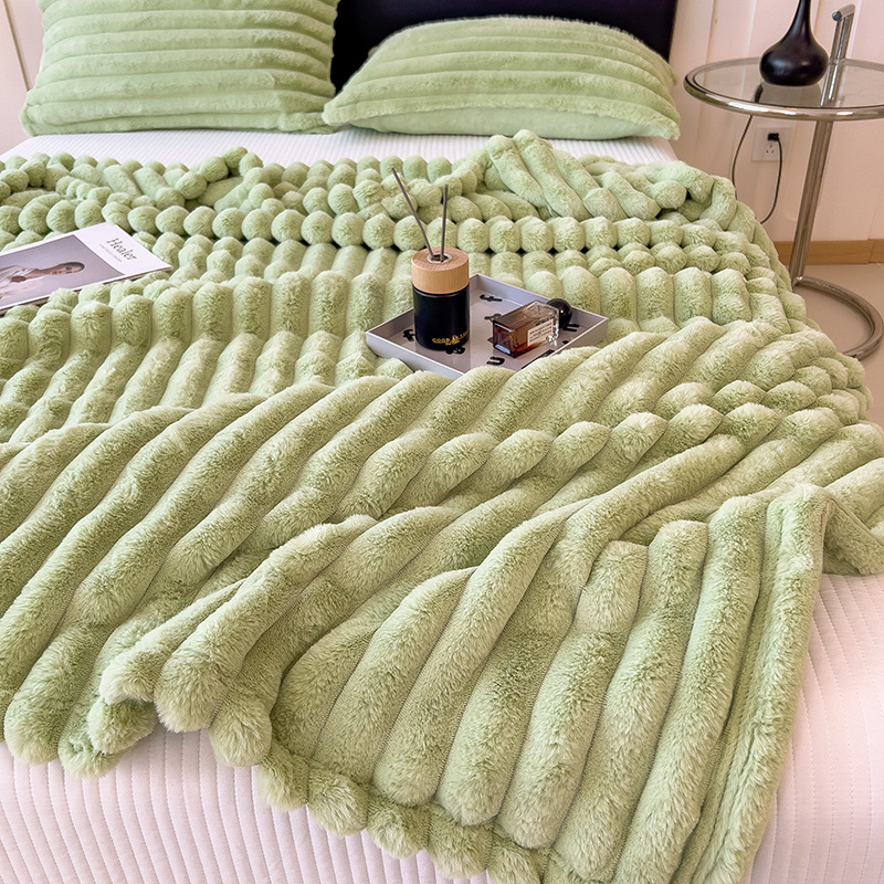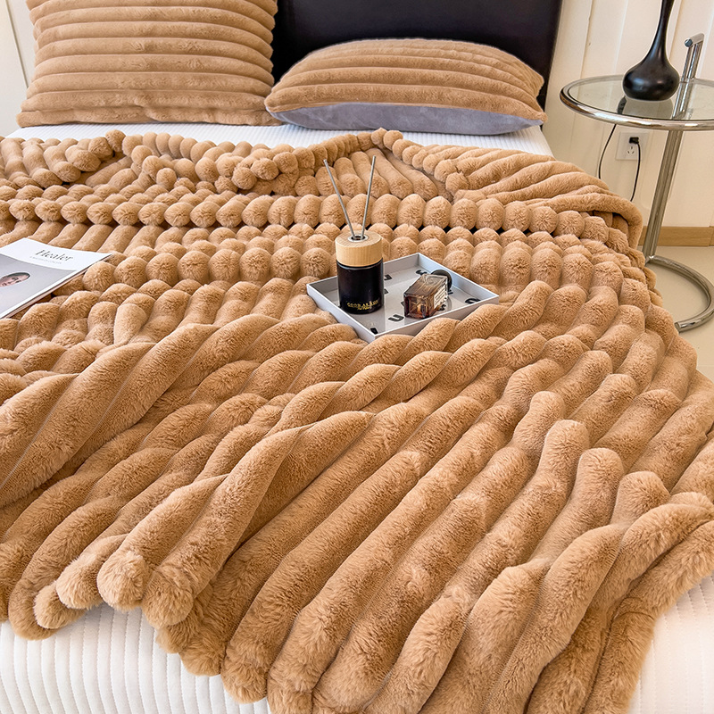 加厚仿兔绒毛毯高克重法兰绒保暖毯子牛奶绒盖毯午睡毯