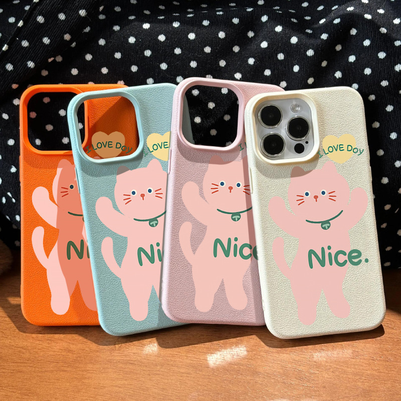仿皮纹可爱cute粉猫适用iPhone16ProMax手机壳14苹果15女生13硅胶