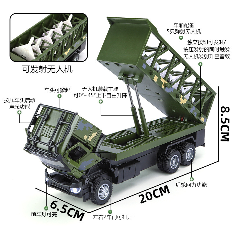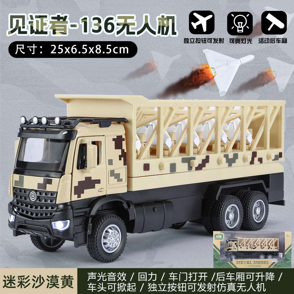 新豪迪合金车模1:36见证者无人机发射车声光回力玩具汽车音乐模型