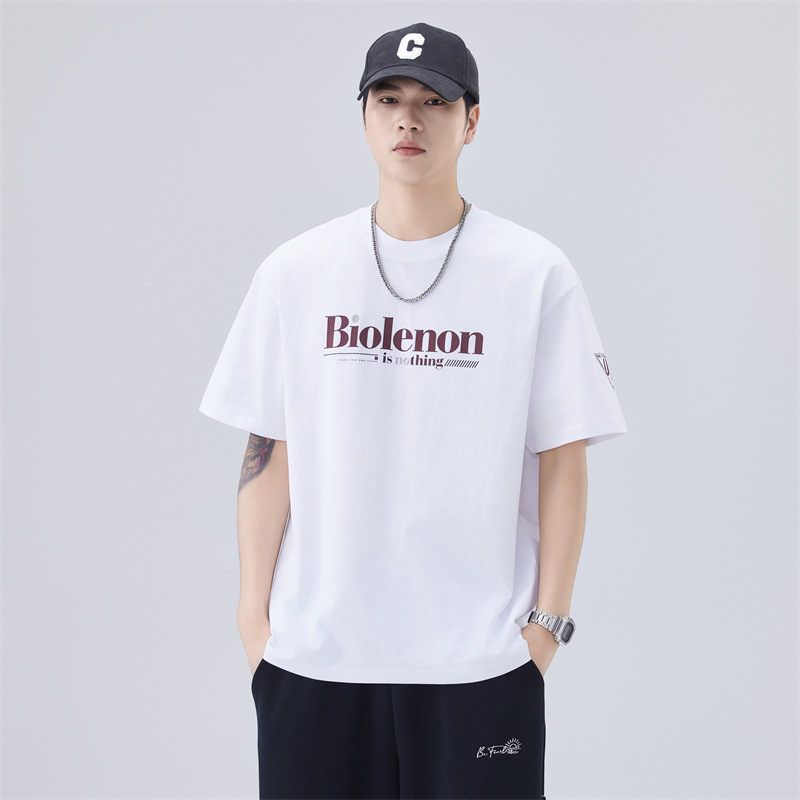 2025夏季印花字母短袖t恤男士纯棉美式复古圆领宽松男装半袖体恤