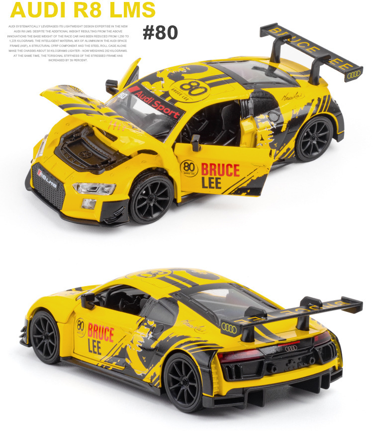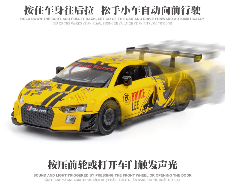 马珂垯合金车模1:32奥迪R8LMSGT3宾利拉花回力玩具车音乐模型摆件
