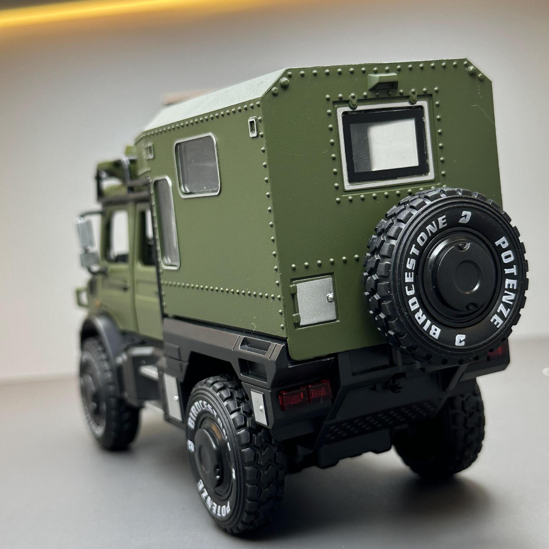 驰美合金1:28车模大驰乌尼莫克越野车回力玩具车声光模型摆件品藏