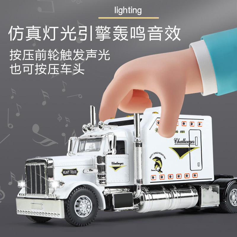 智冠合金车模1比24彼得比尔特389美式拖头回力玩具车音乐模型摆件
