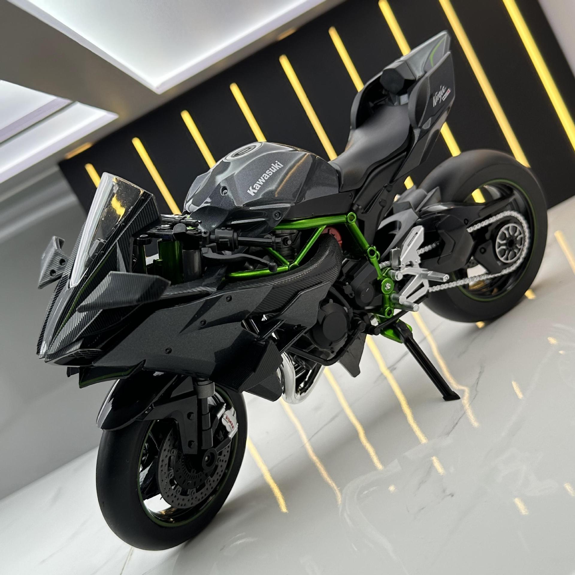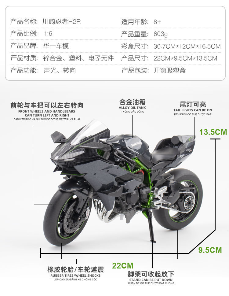 华一合金车模1:9川崎忍者H2R摩托车男孩玩具车带声光模型摆件藏品