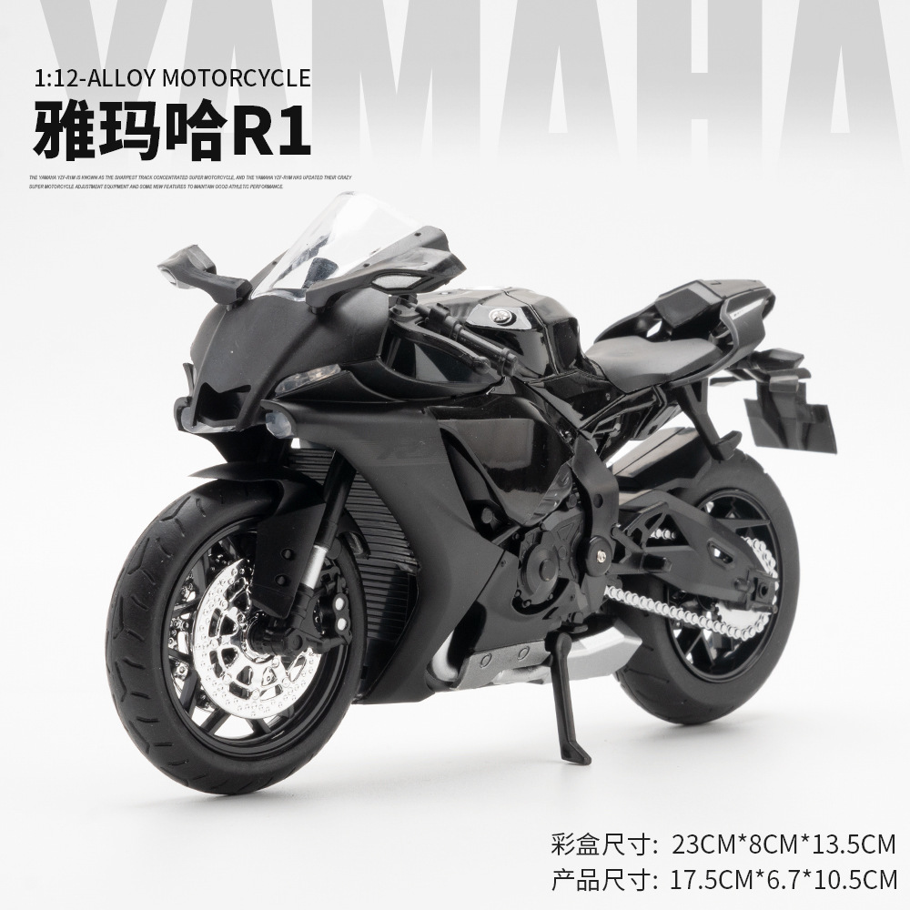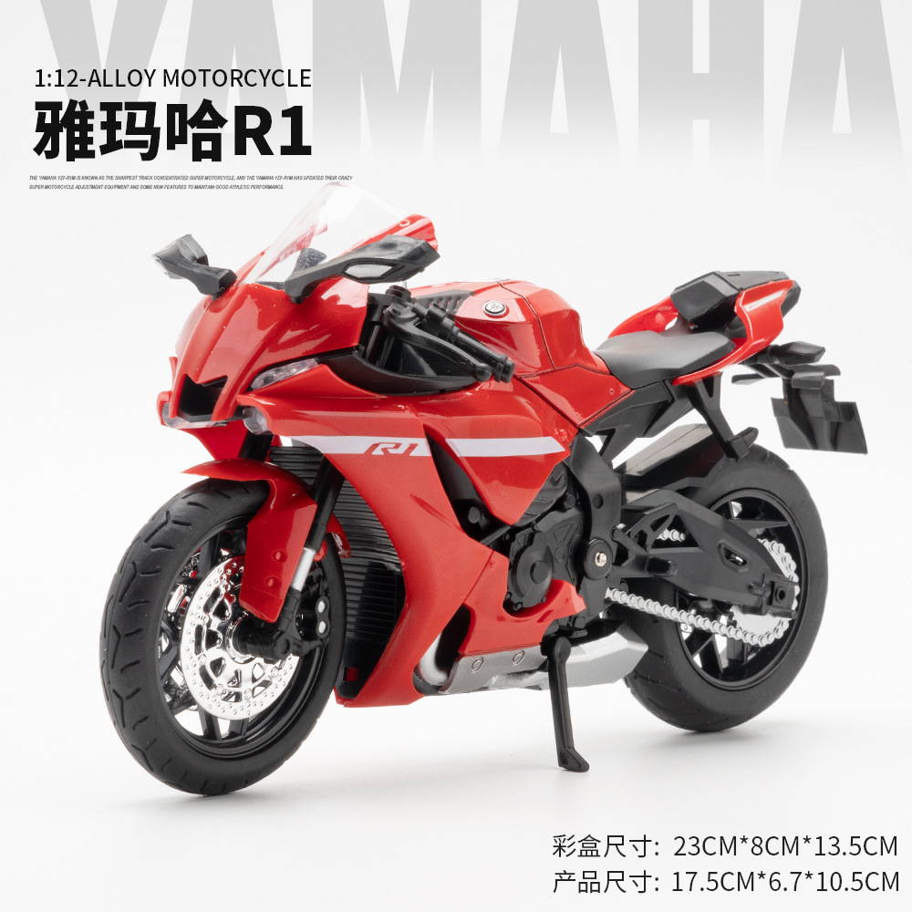 华一合金车模1:12雅马哈R1摩托车发声灯光玩具车音乐模型摆件藏品