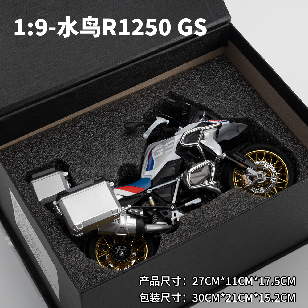 华一合金车模1:9水鸟R1250GS摩托车滑行玩具车带灯光模型摆件