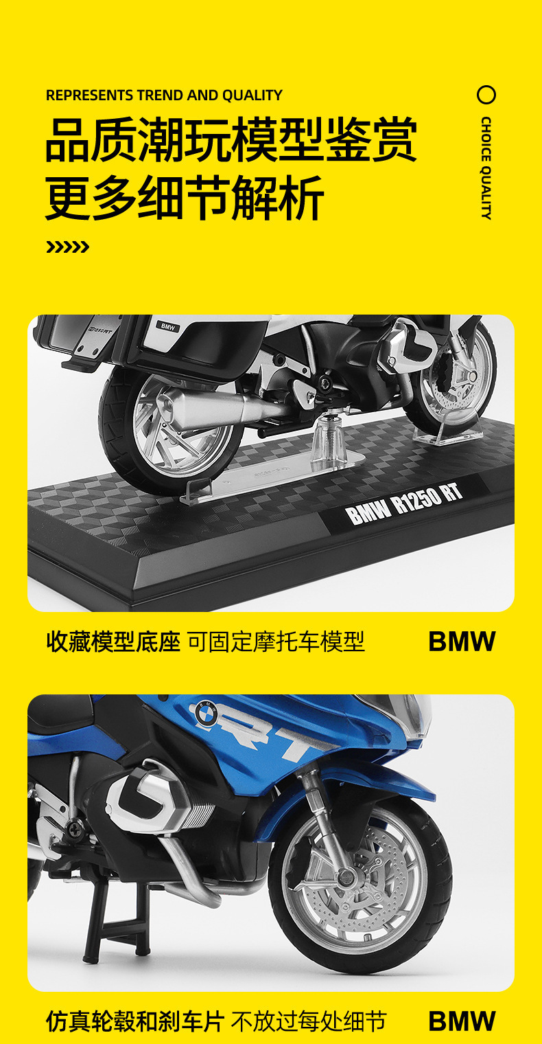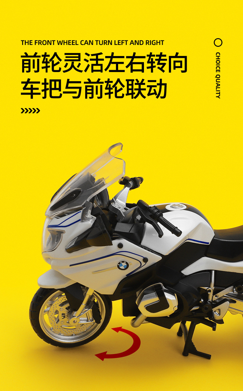 彩珀合金车模1:12宝马R1250R摩托车避震儿童玩具模型摆件礼品收藏