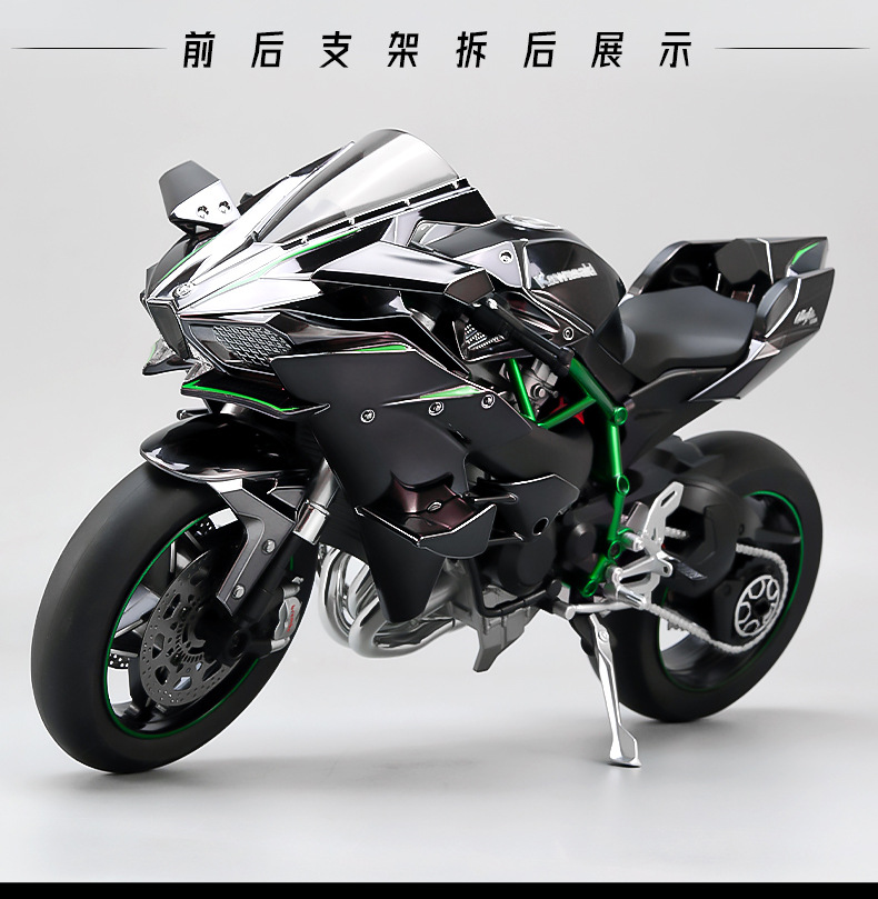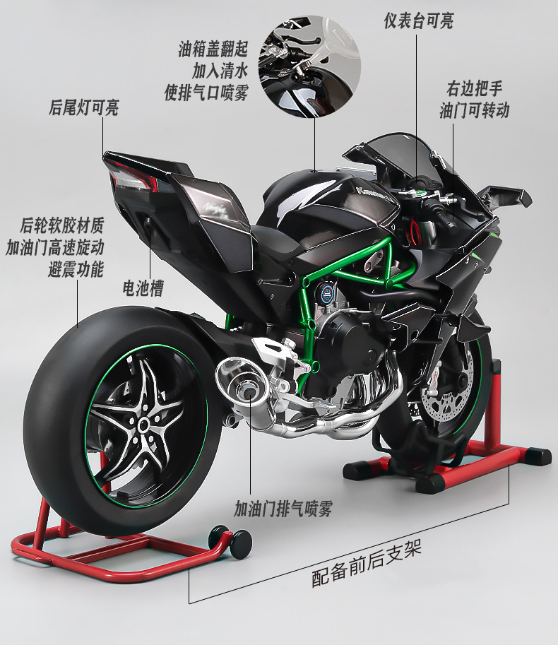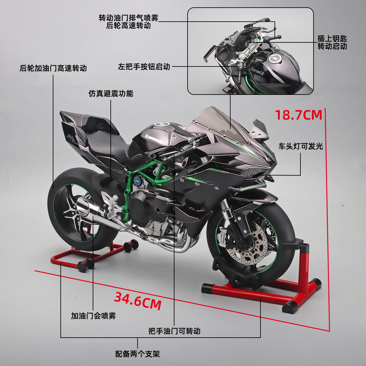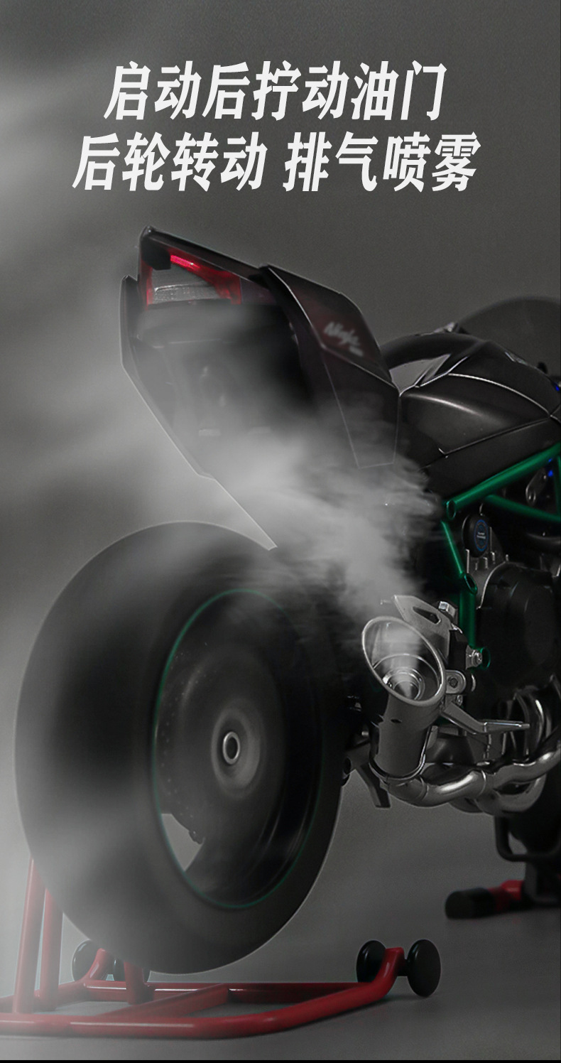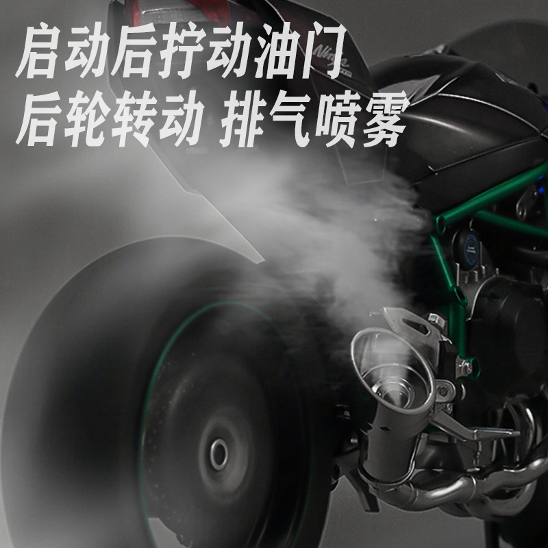 XLG合金车模1比6川崎H2R摩托车钥匙启动带喷雾玩具车音效模型
