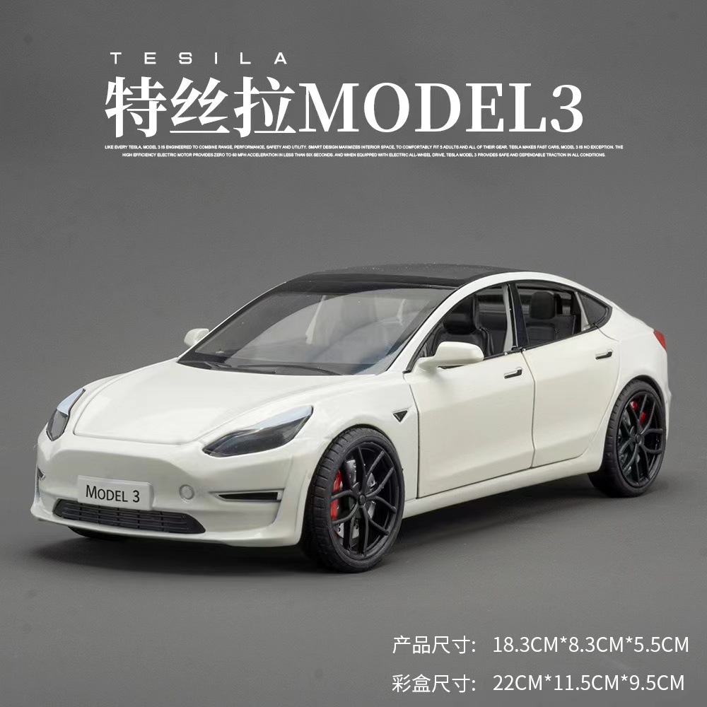 XLG合金车模1比24特斯拉model3声光回力玩具汽车音乐模型摆件