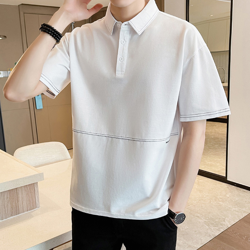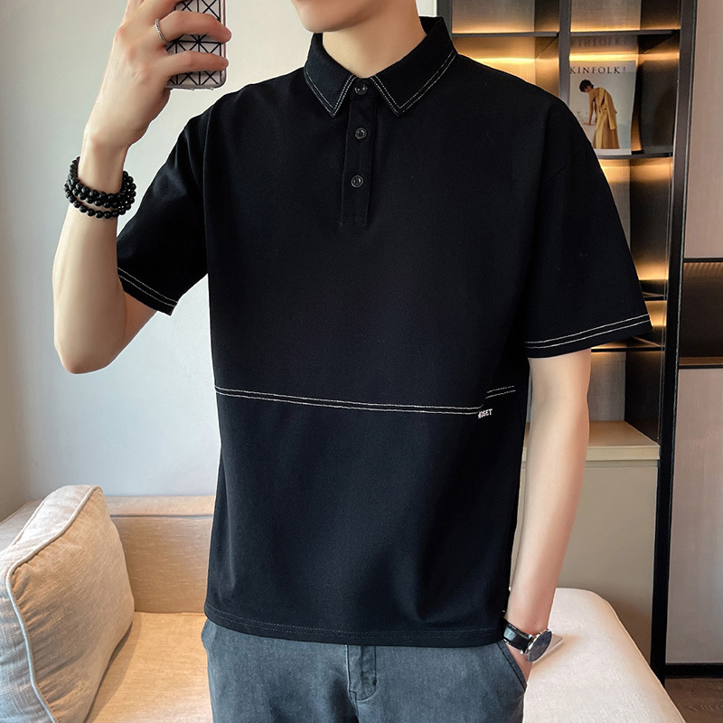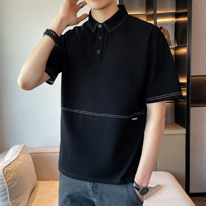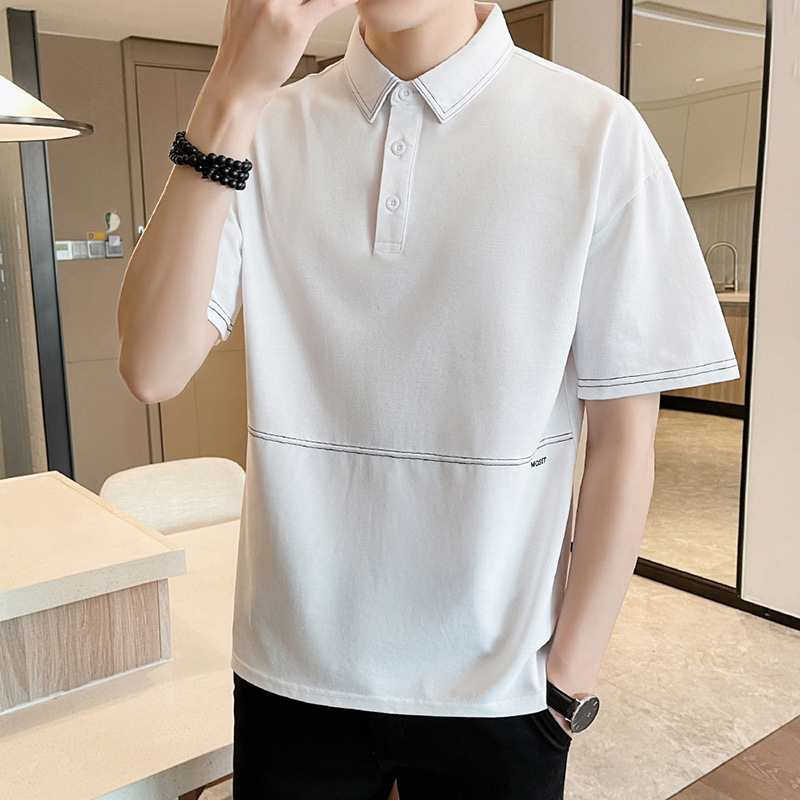 夏季男士半袖polo衫休闲韩版短袖t恤男宽松潮牌字母刺绣翻领体恤