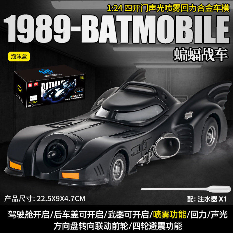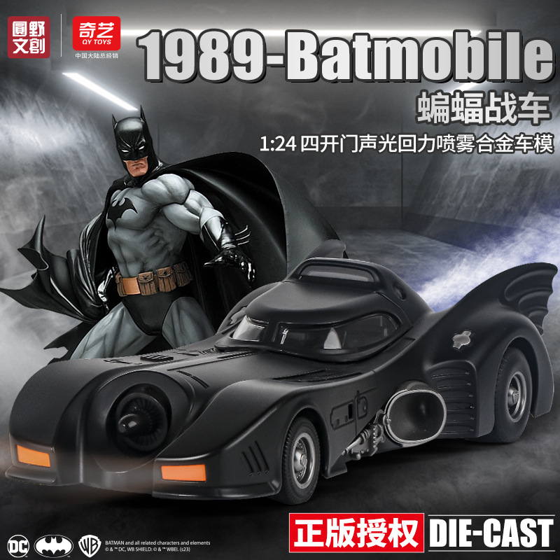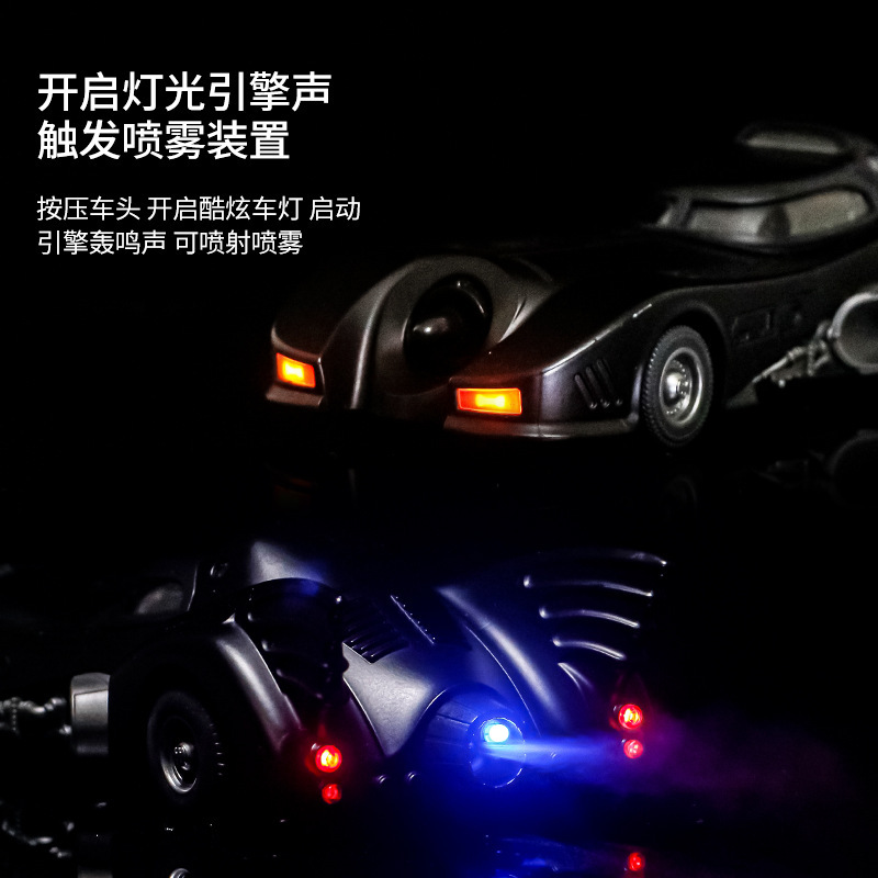 奇艺合金车模1:24蝙蝠战车带喷雾声光回力玩具车音乐模型摆件藏品