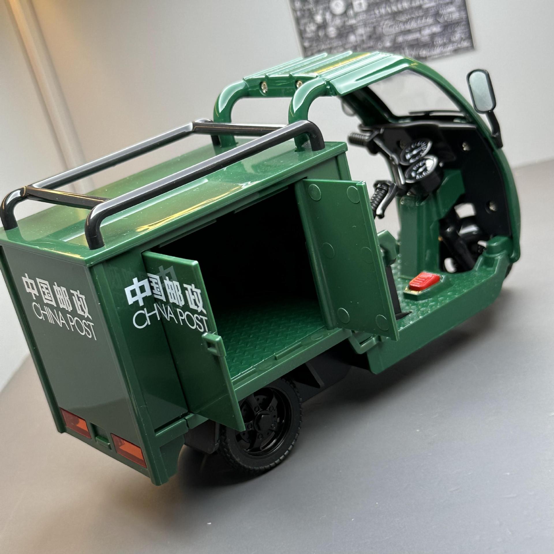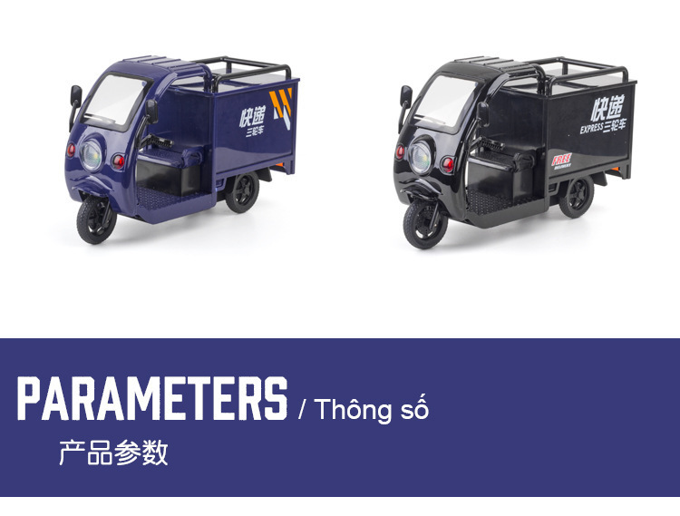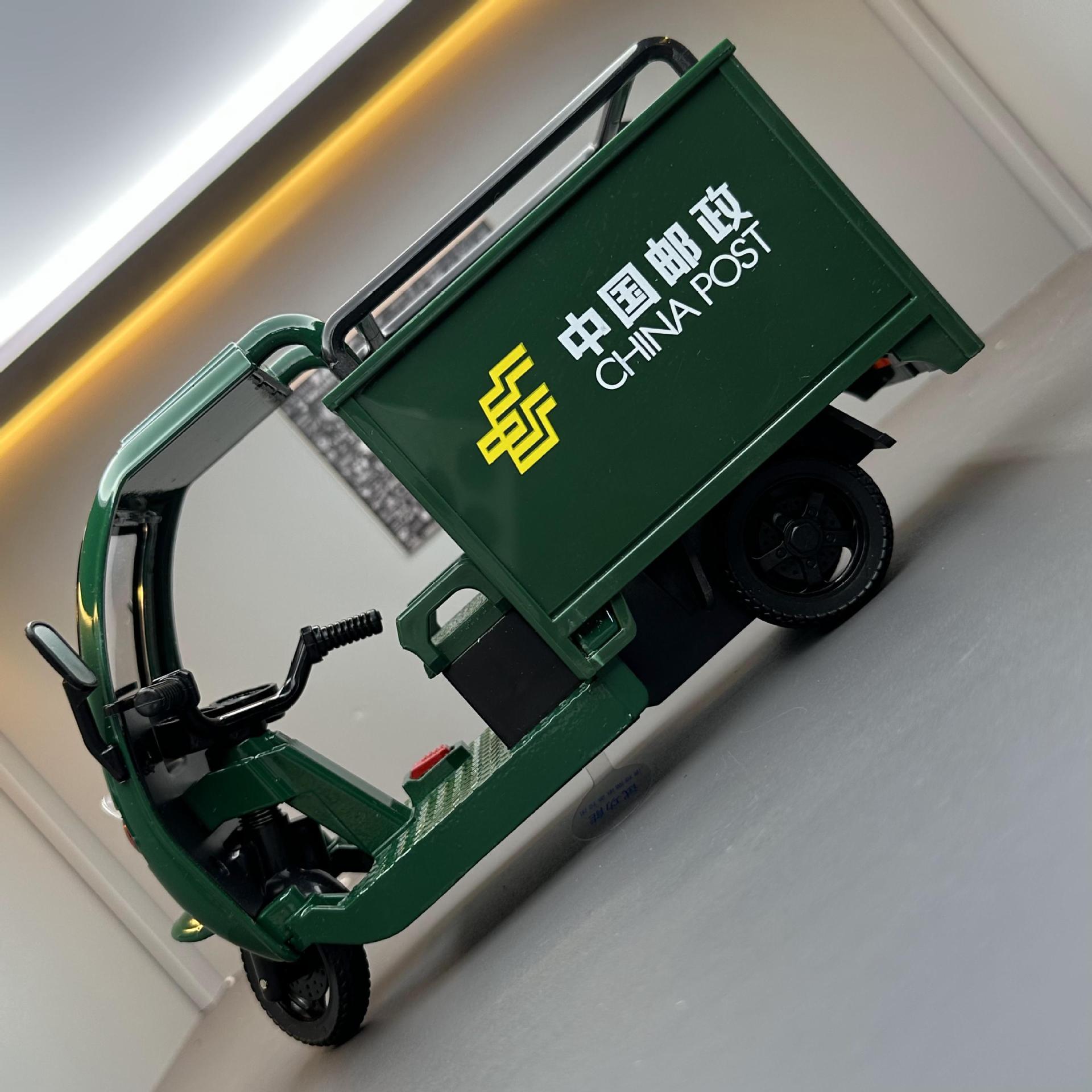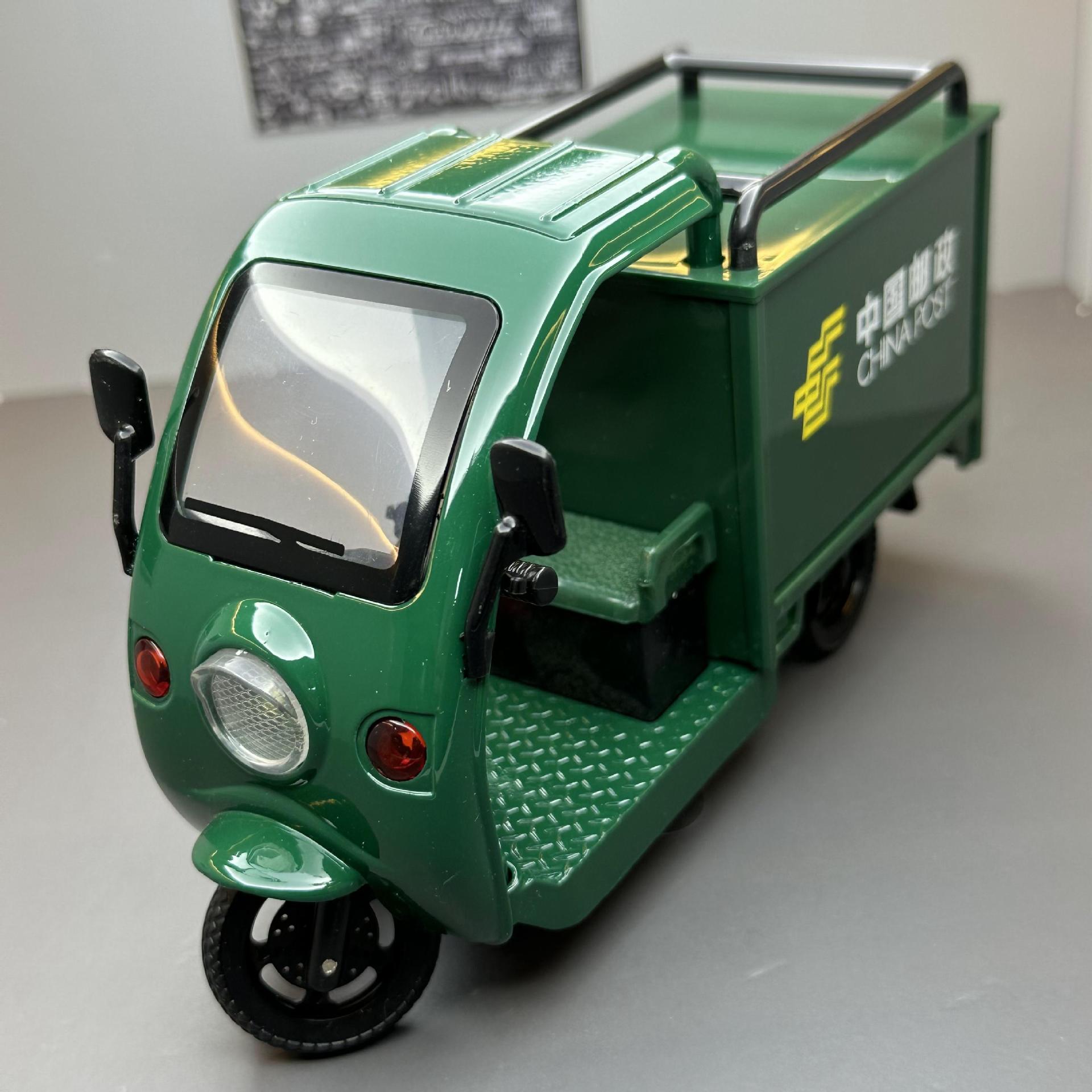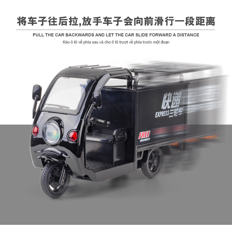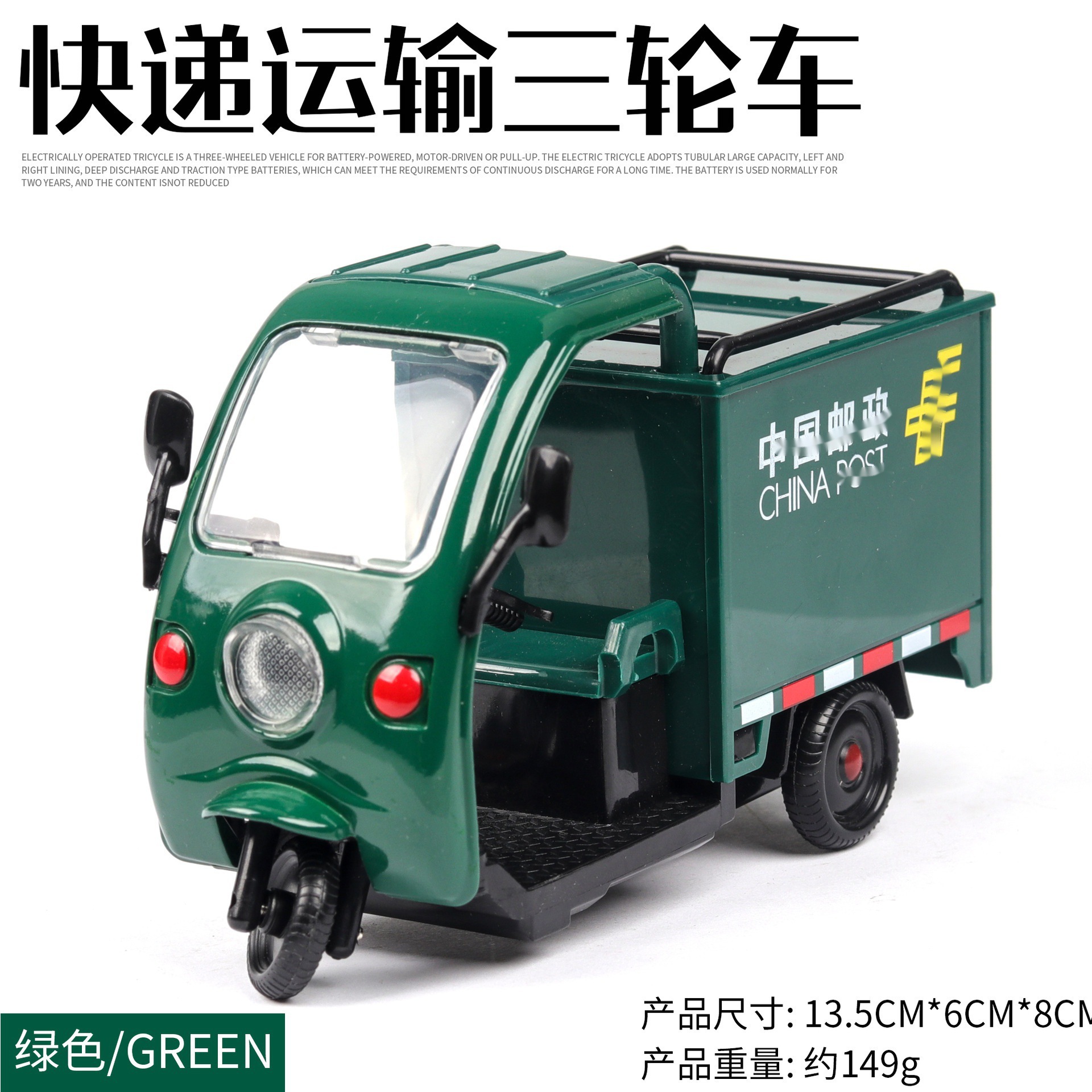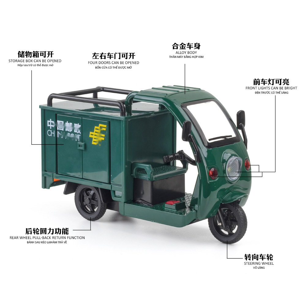 彩利信合金车模1:24快递三轮摩托车带声光回力玩具车音乐模型摆件