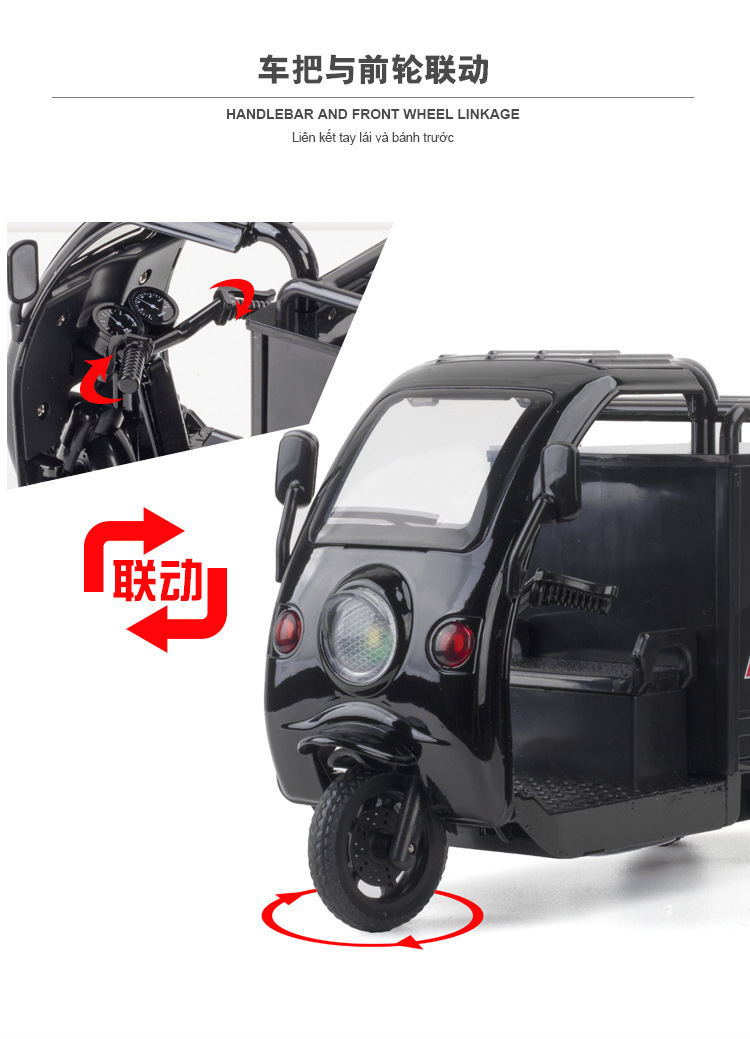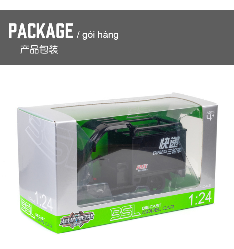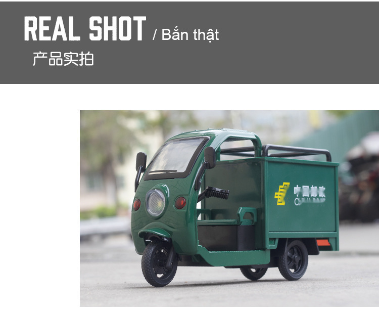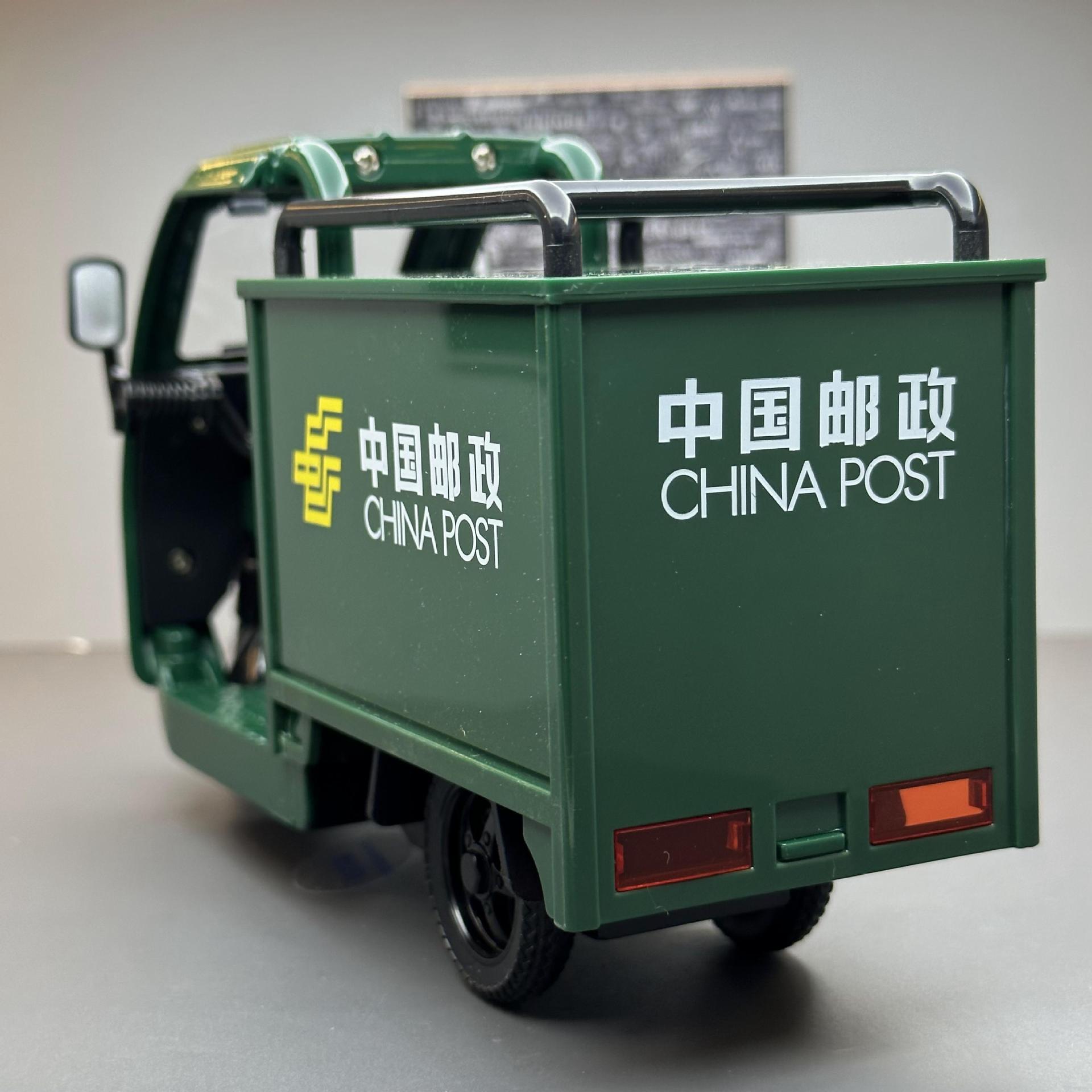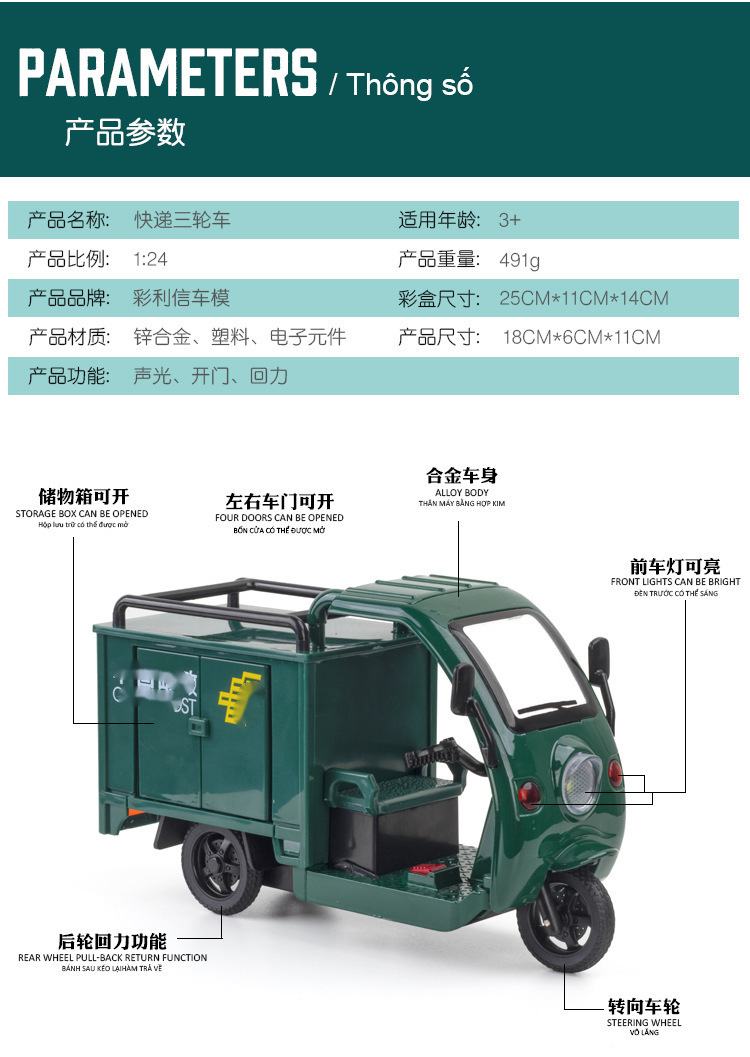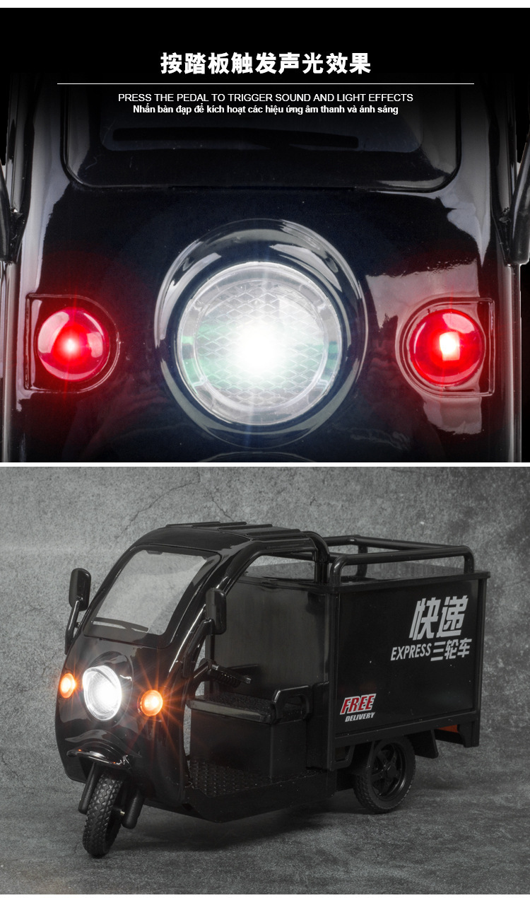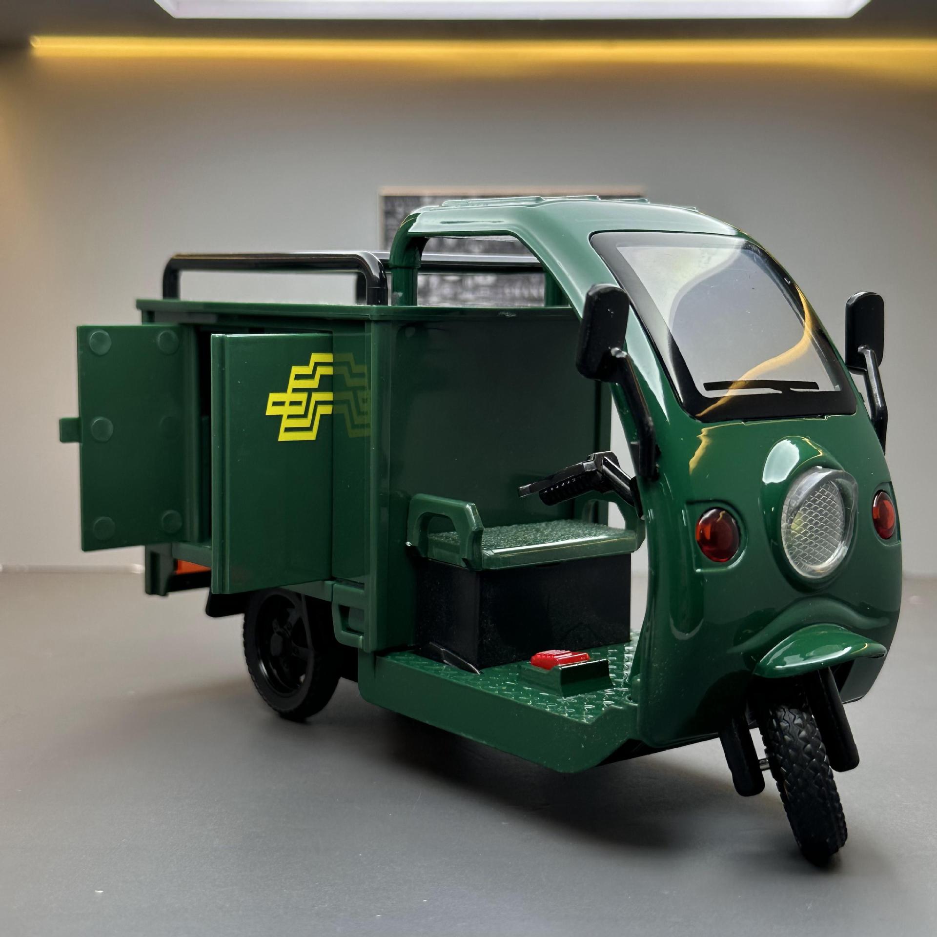 彩利信合金车模1:24快递三轮摩托车带声光回力玩具车音乐模型摆件