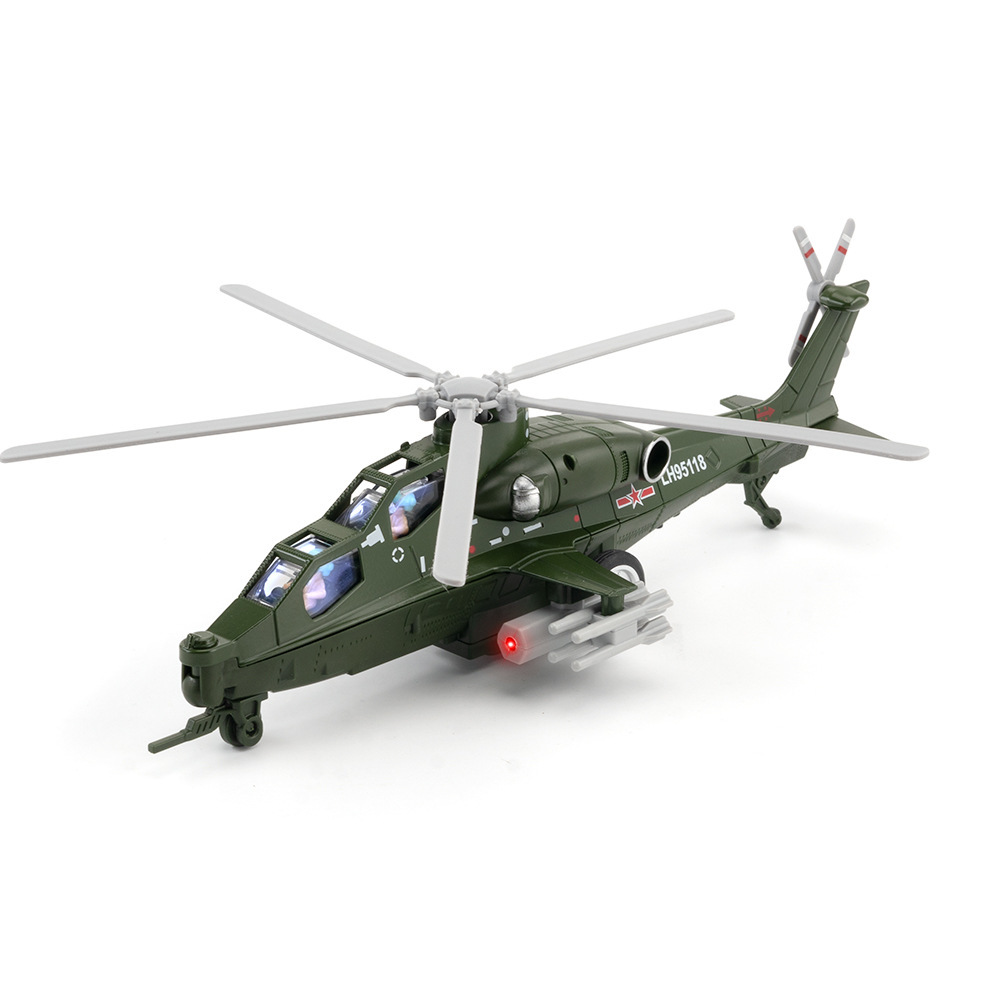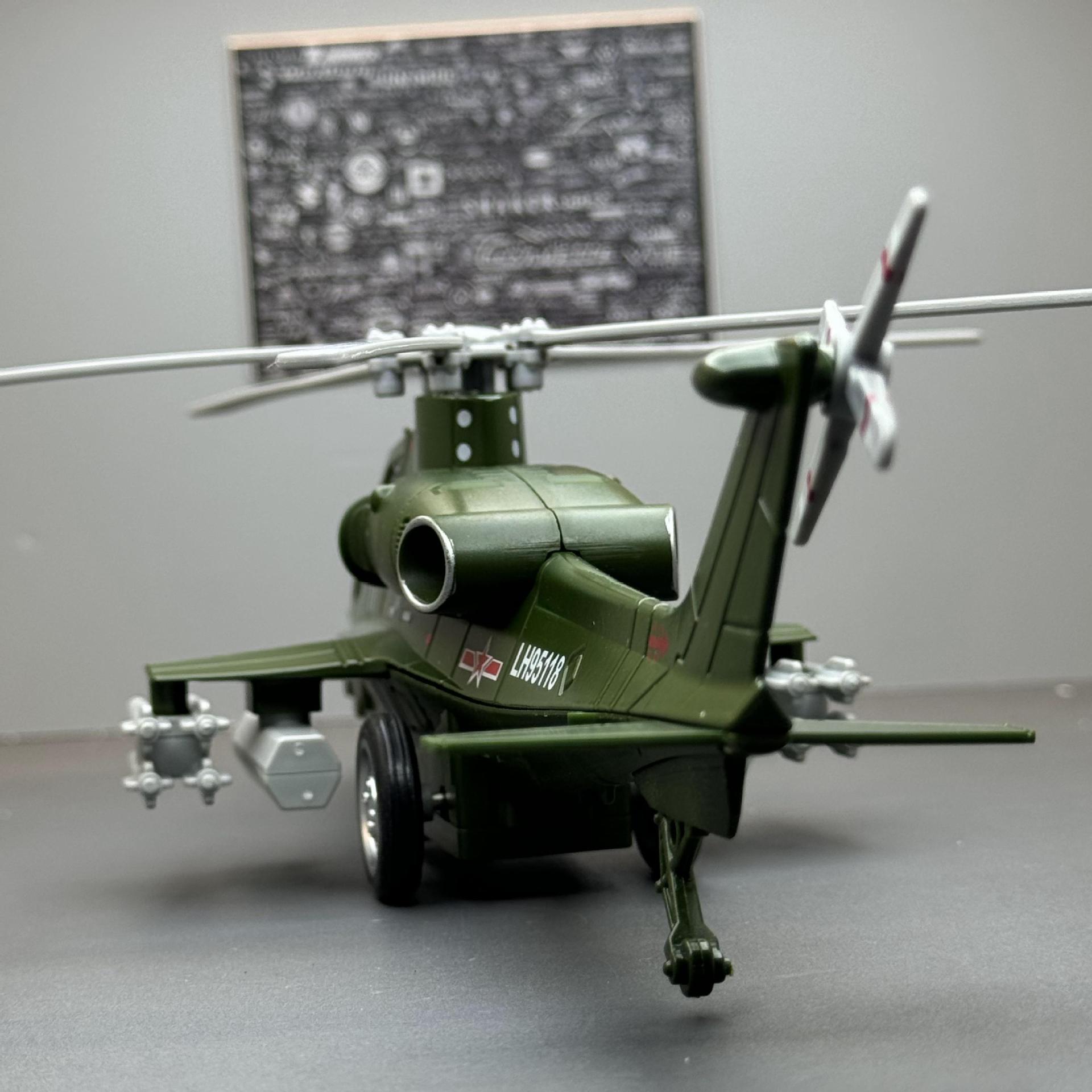 彩利信合金武直十合金战斗飞机模型带声光回力儿童玩具直升机摆件