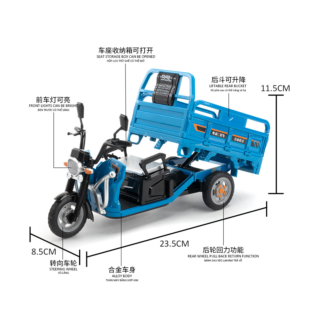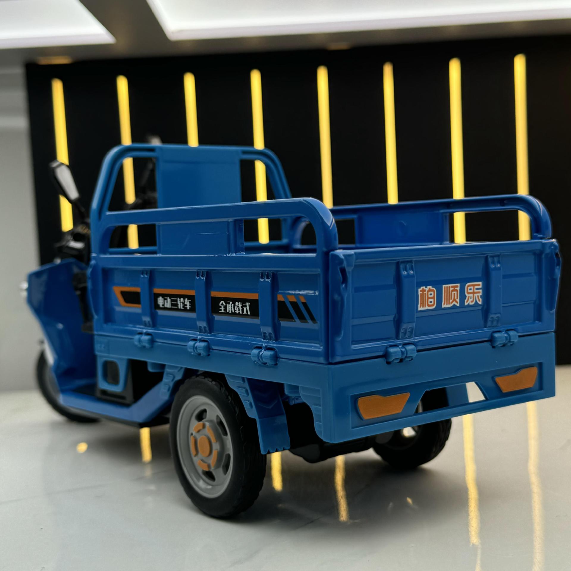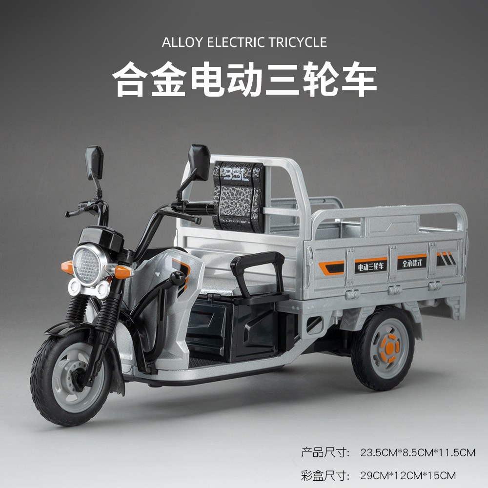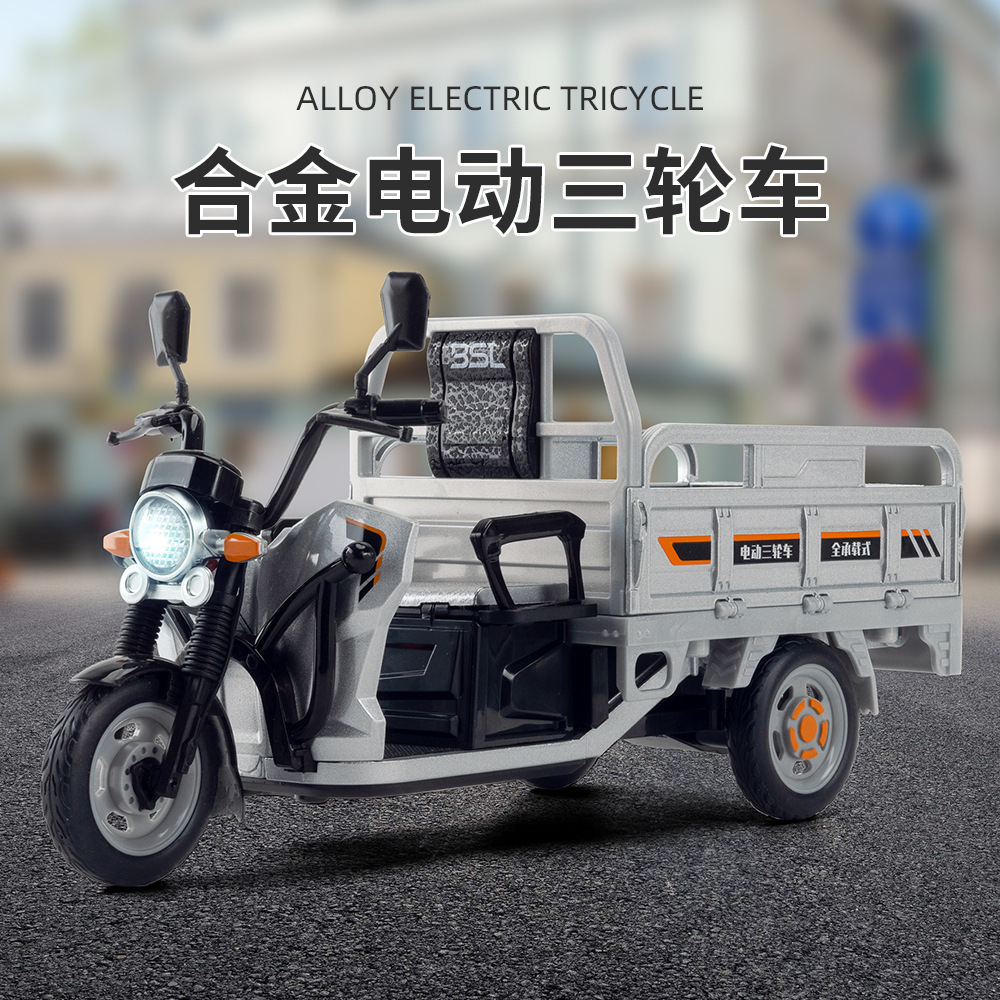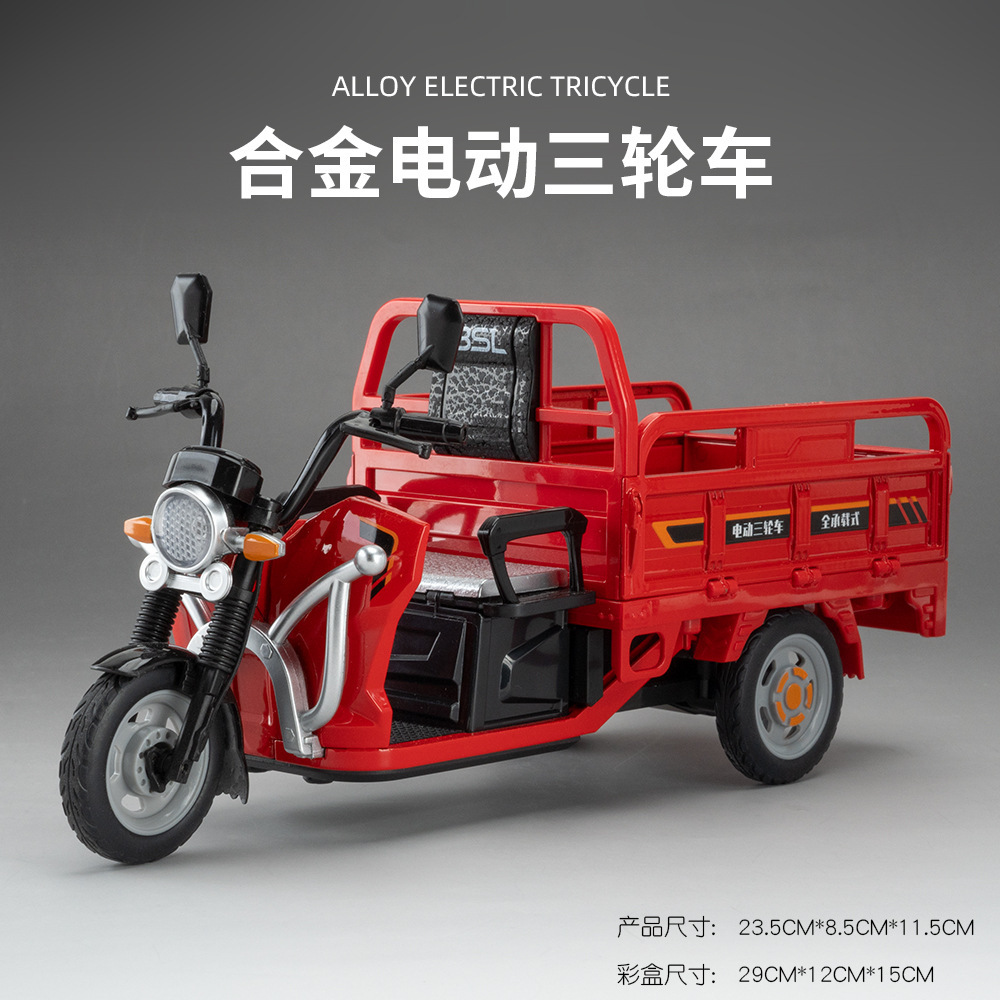 彩立信合金车模1:12三轮摩托车带声光回力玩具车音效模型摆件