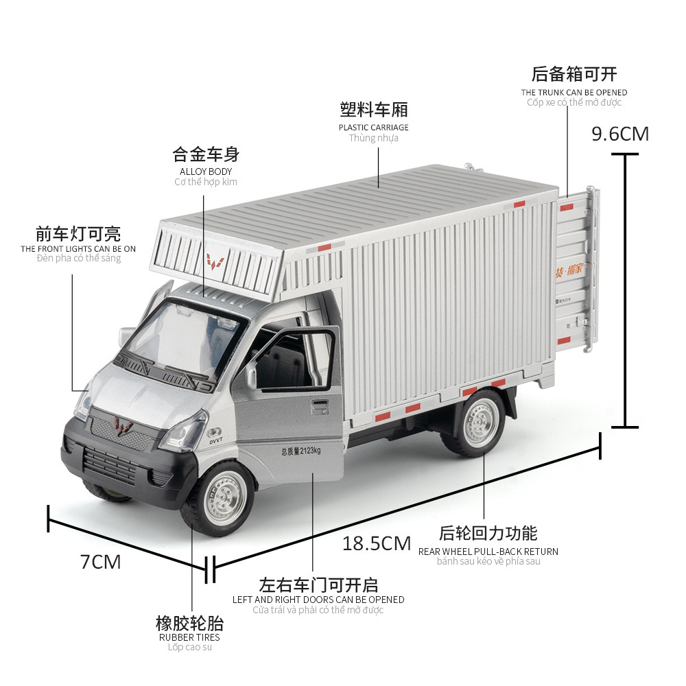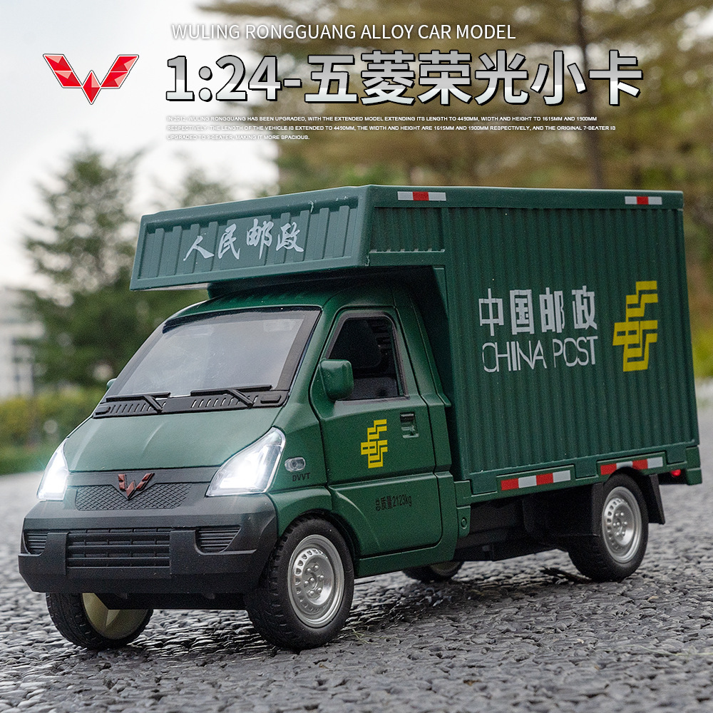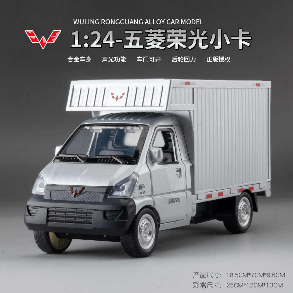 彩利信合金车模1:24五菱荣光小卡声光回力柳州货柜玩具车音乐模型