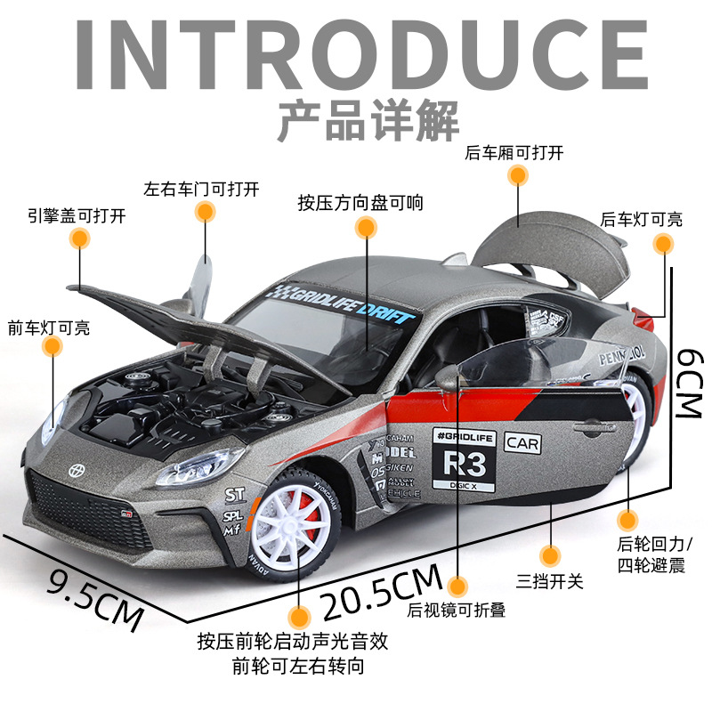 利佳信合金车模1:24丰田GR86跑车声光回力玩具车音效模型摆件