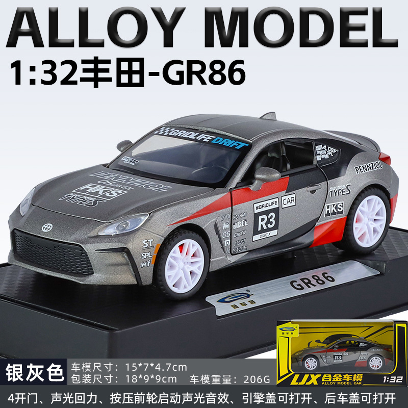 利佳信合金车模1:32丰田GR86跑车声光回力玩具车音效模型摆件