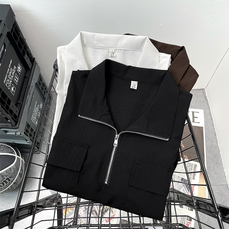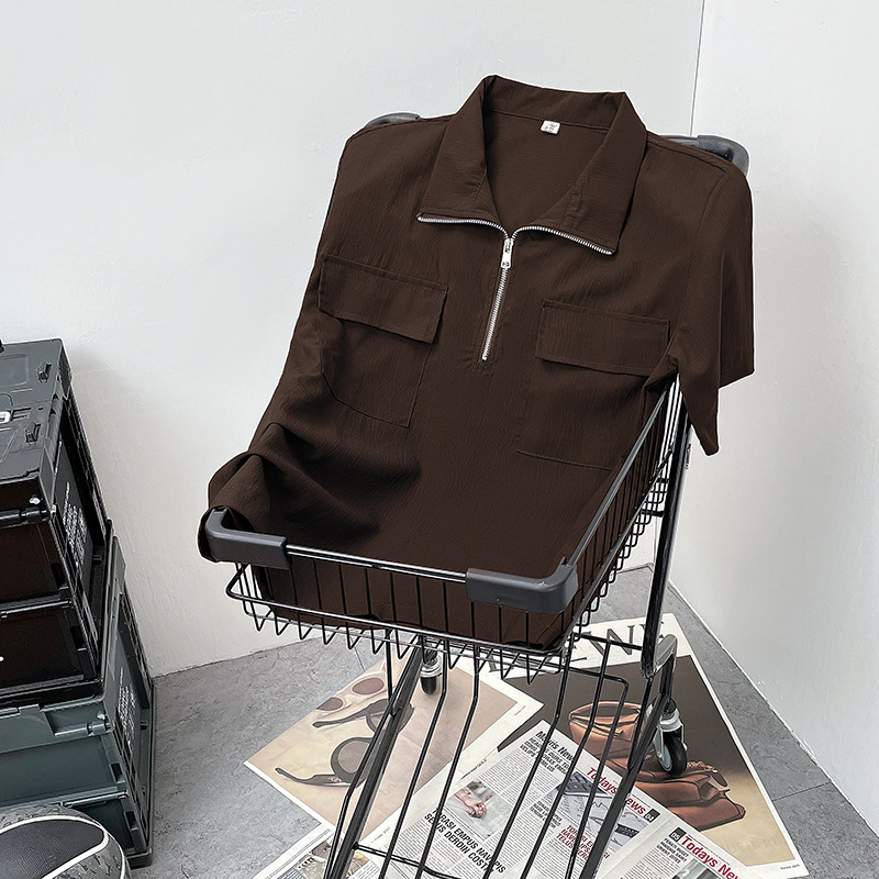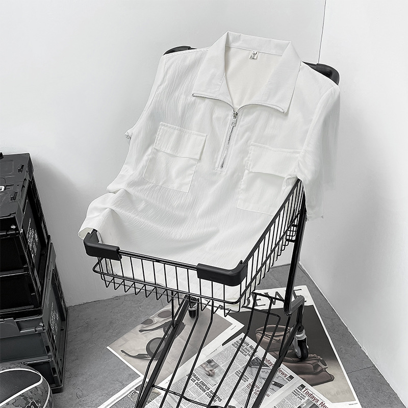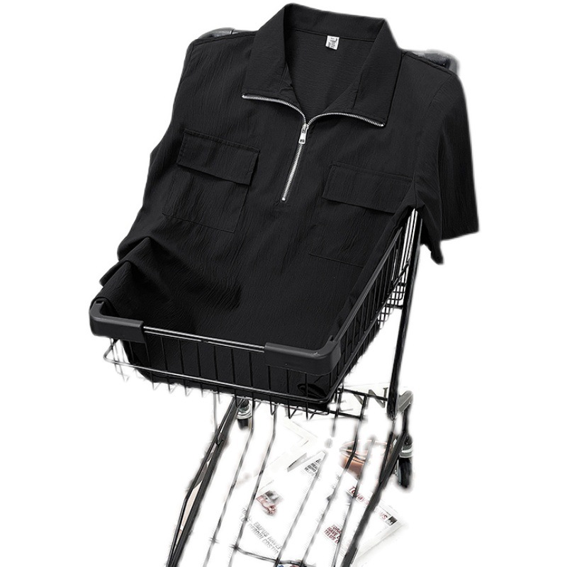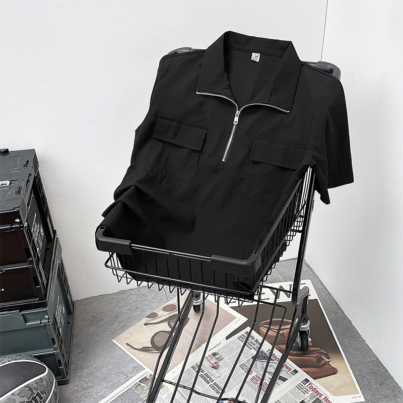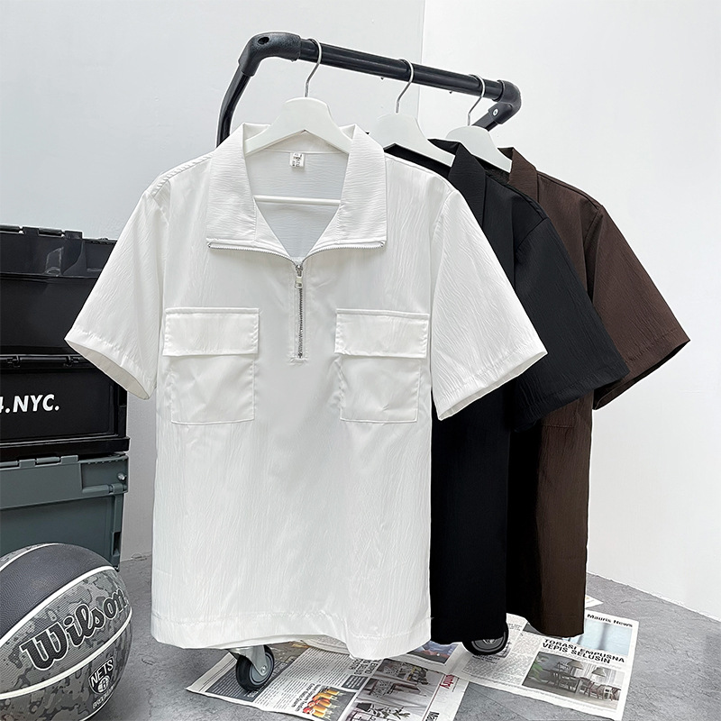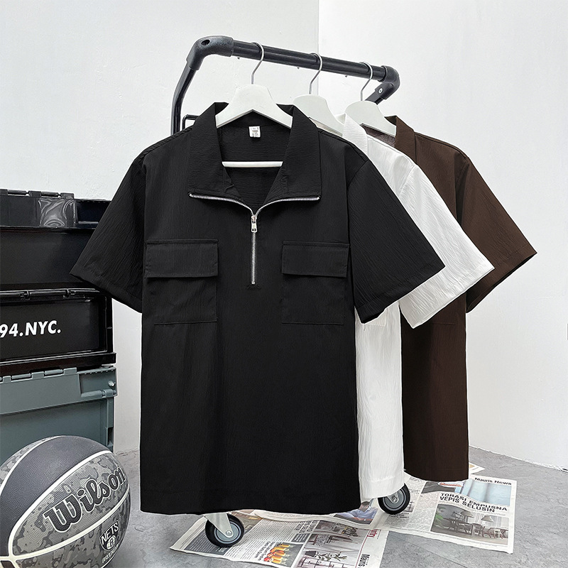 半拉链短袖衬衫男士夏季痞帅翻领polo衫宽松日系潮流休闲半袖衬衣