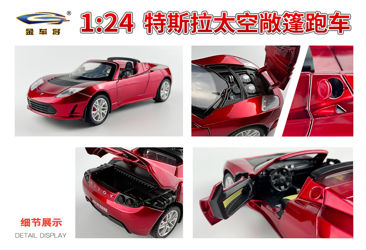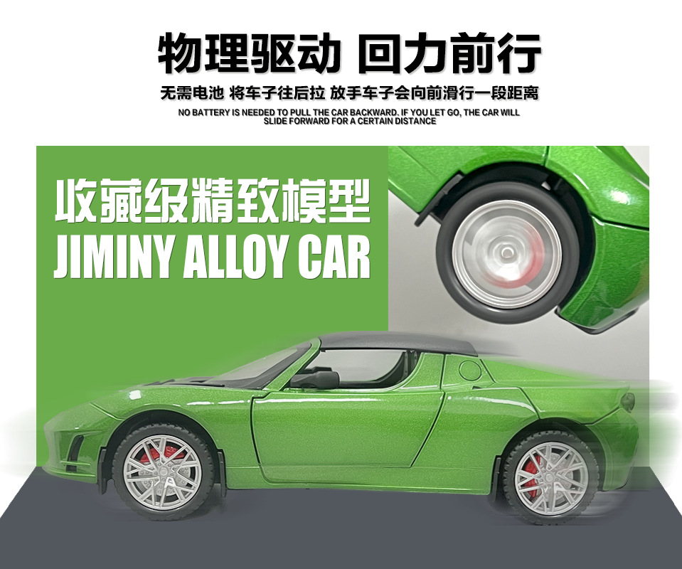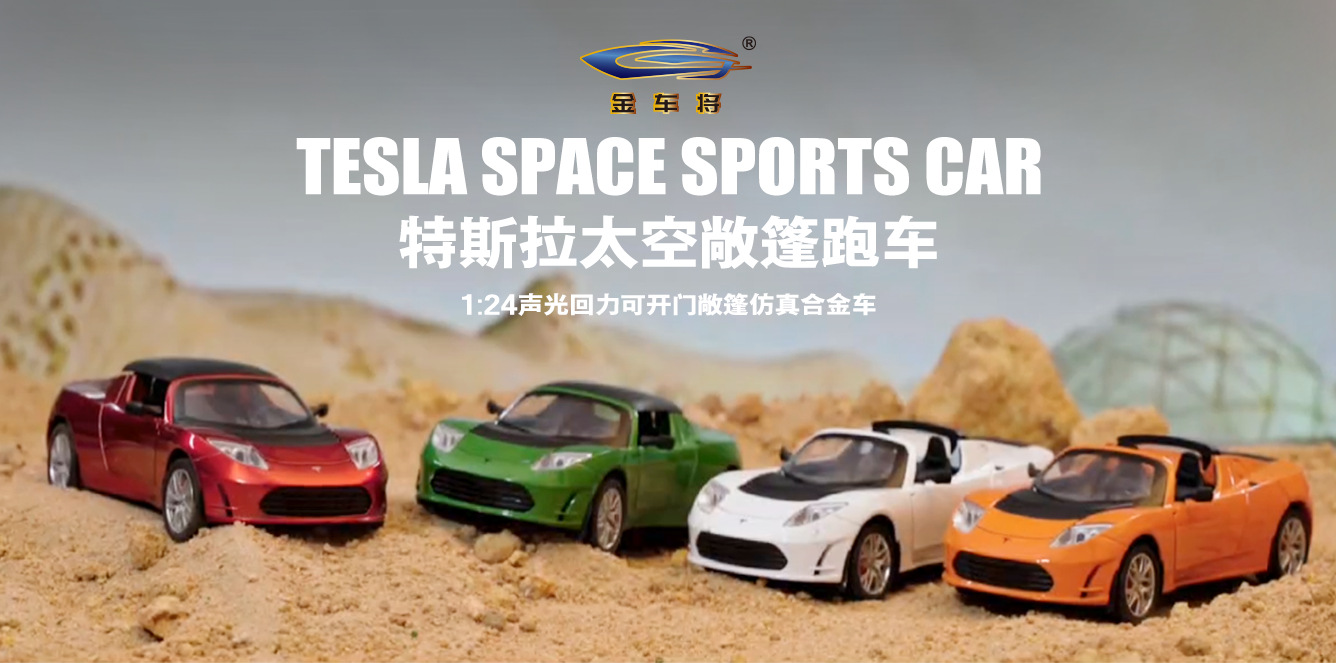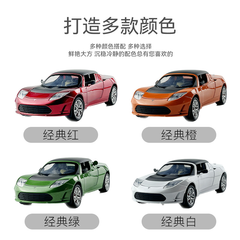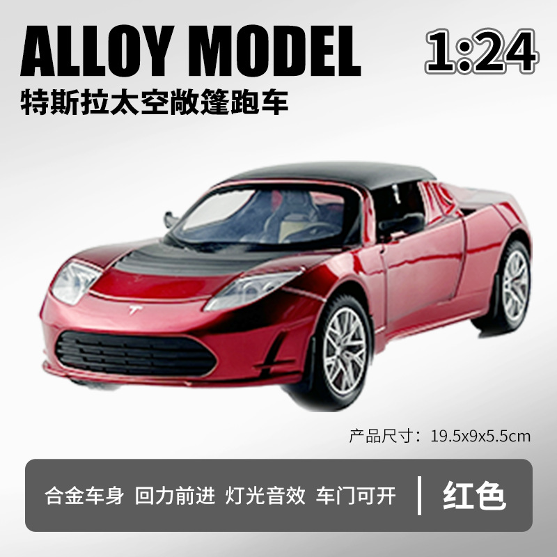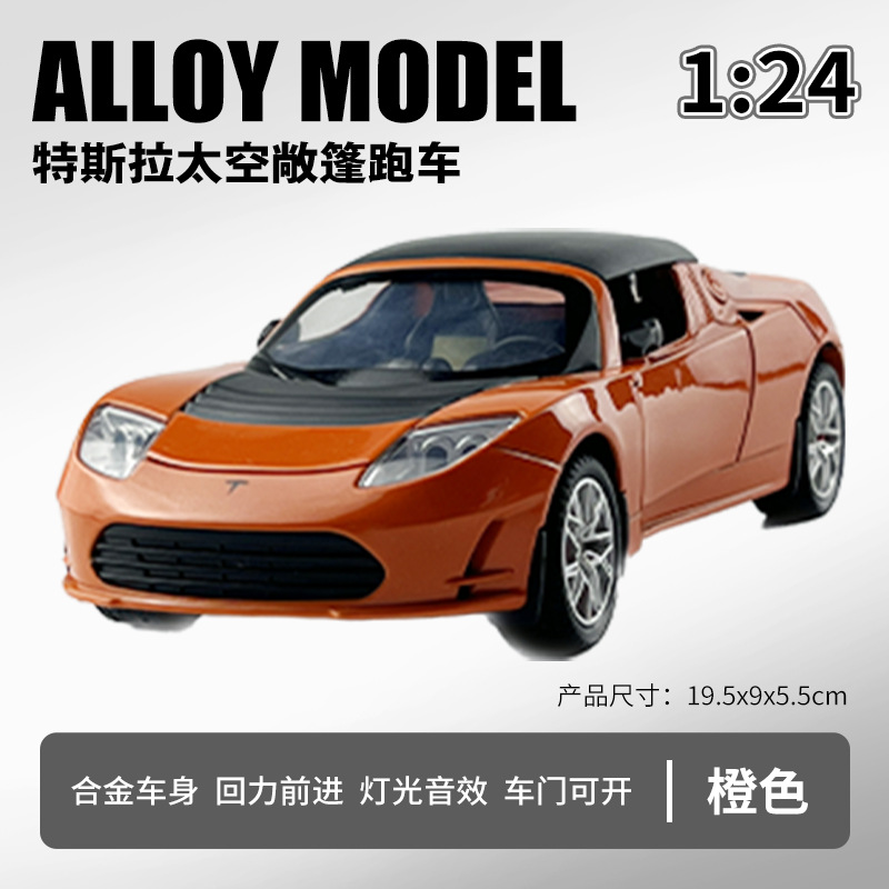 利佳信合金车模1:24特斯拉敞篷跑车太空版回力玩具车音乐模型摆件