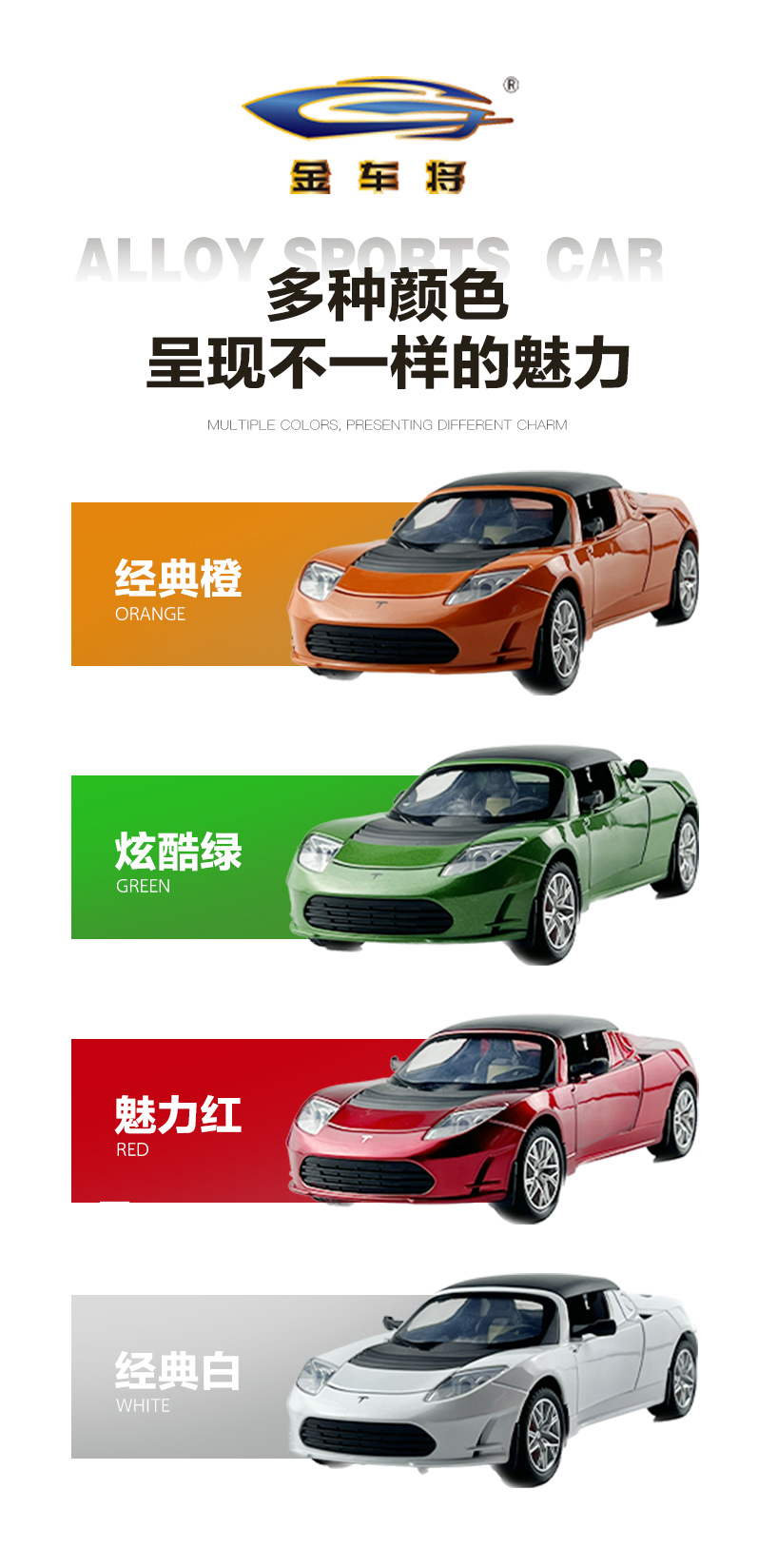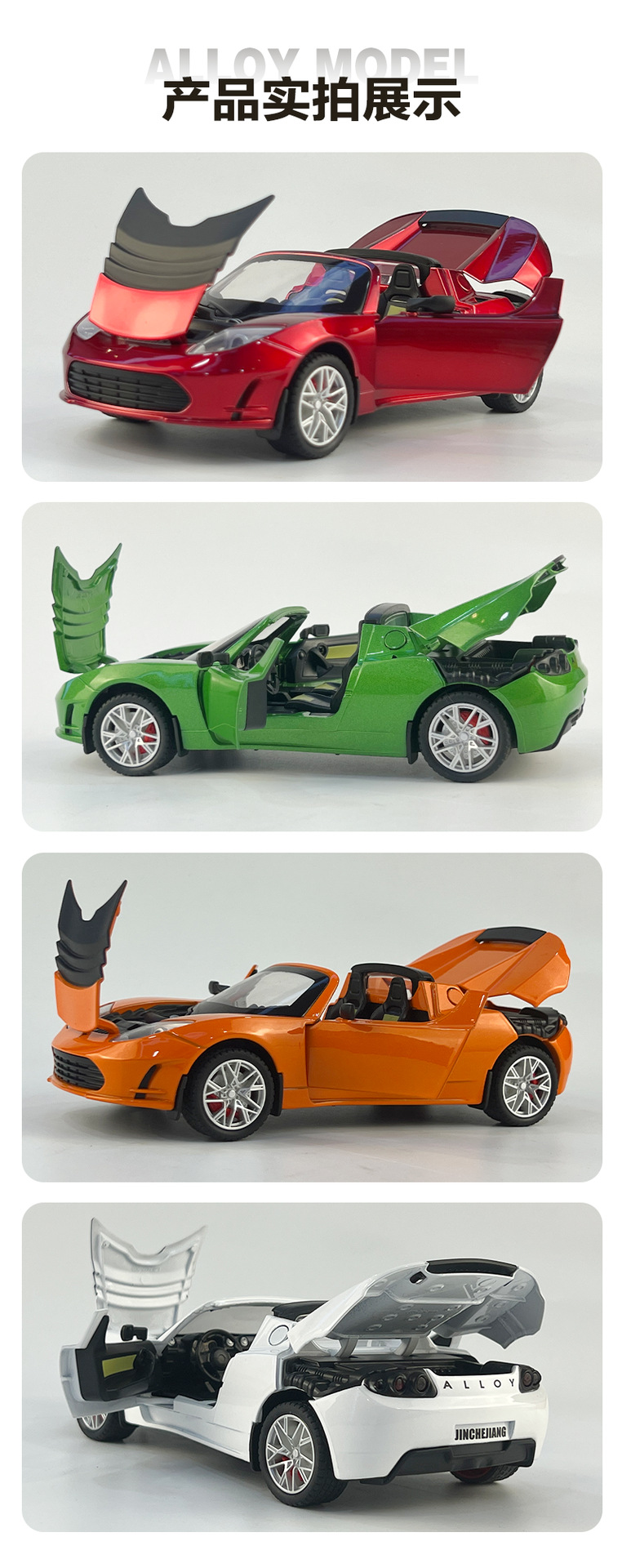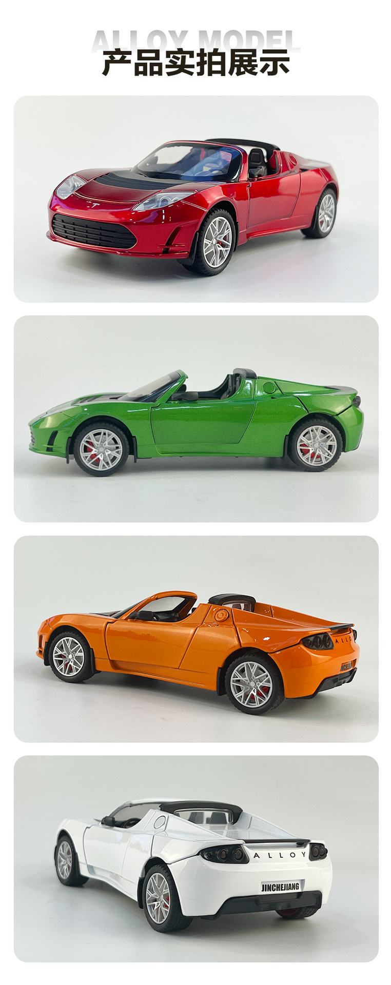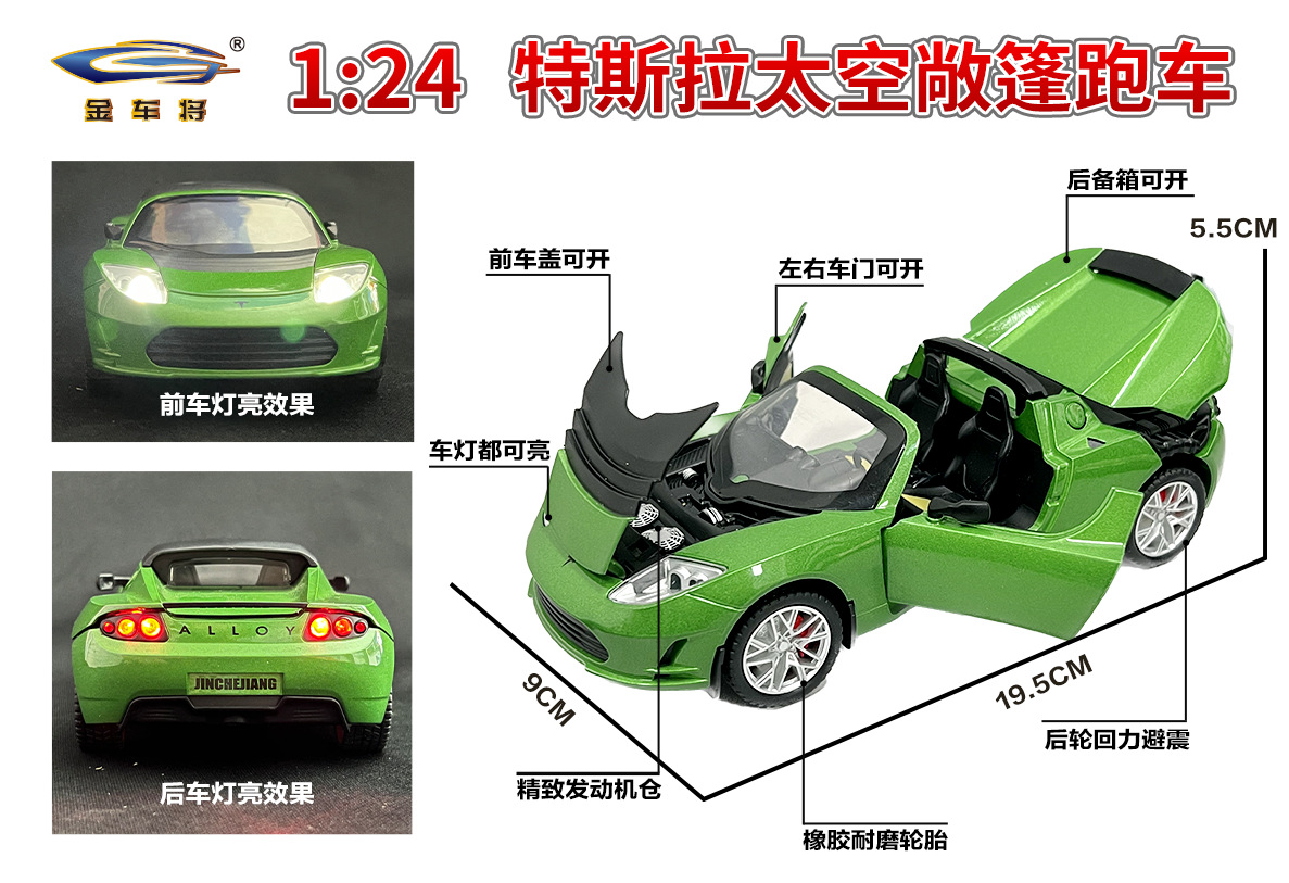 利佳信合金车模1:24特斯拉敞篷跑车太空版回力玩具车音乐模型摆件