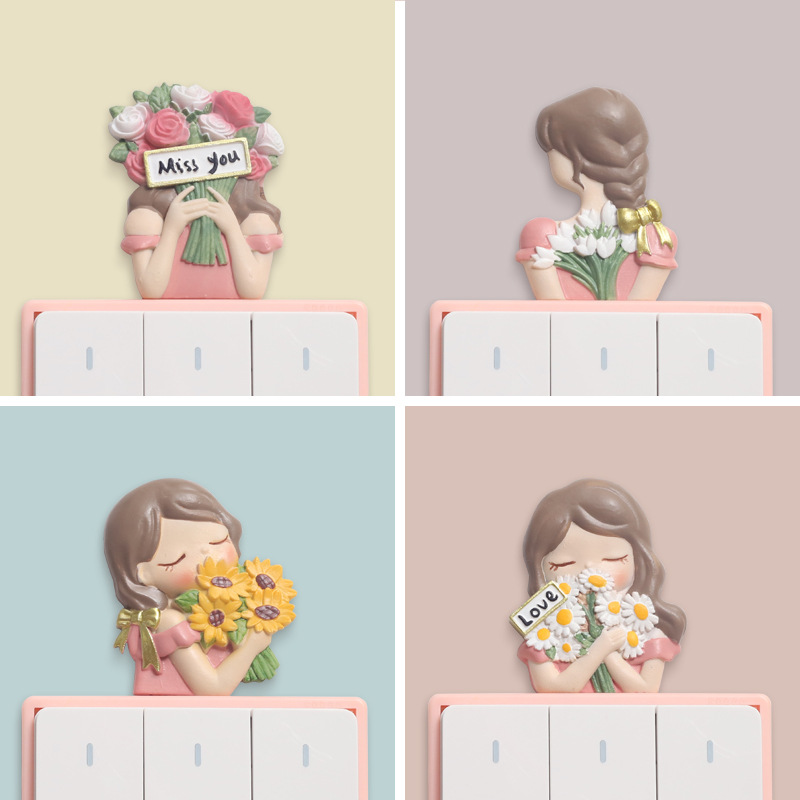 现代简约家居墙面3D立体树脂开关贴创意可爱女生房间墙贴装饰品