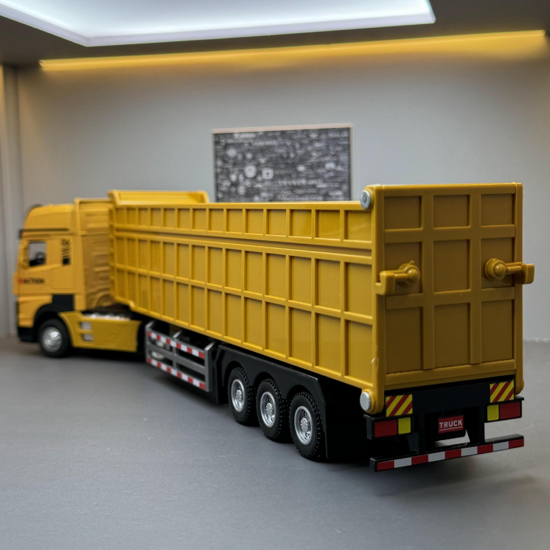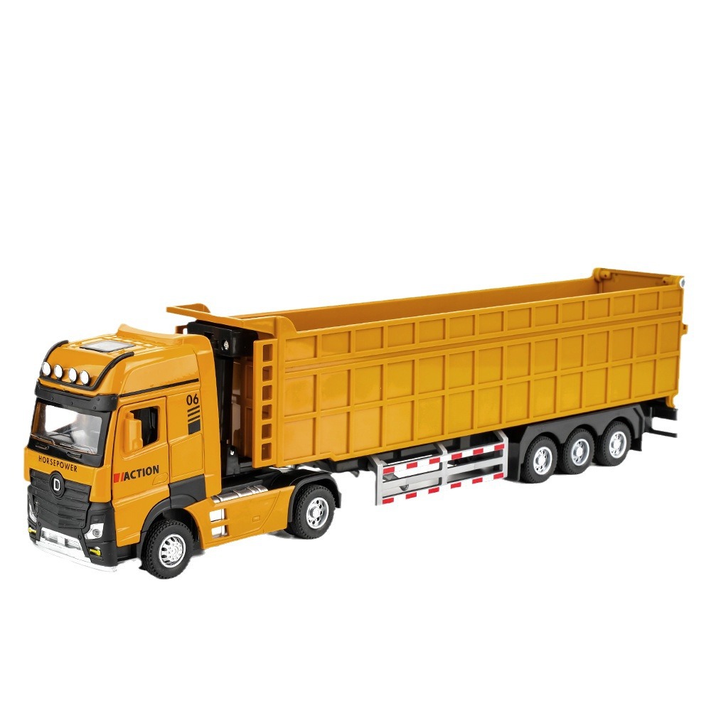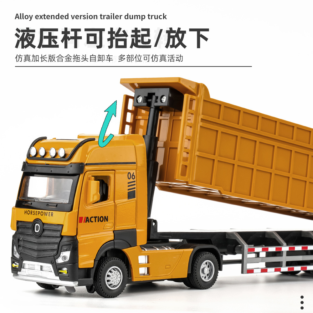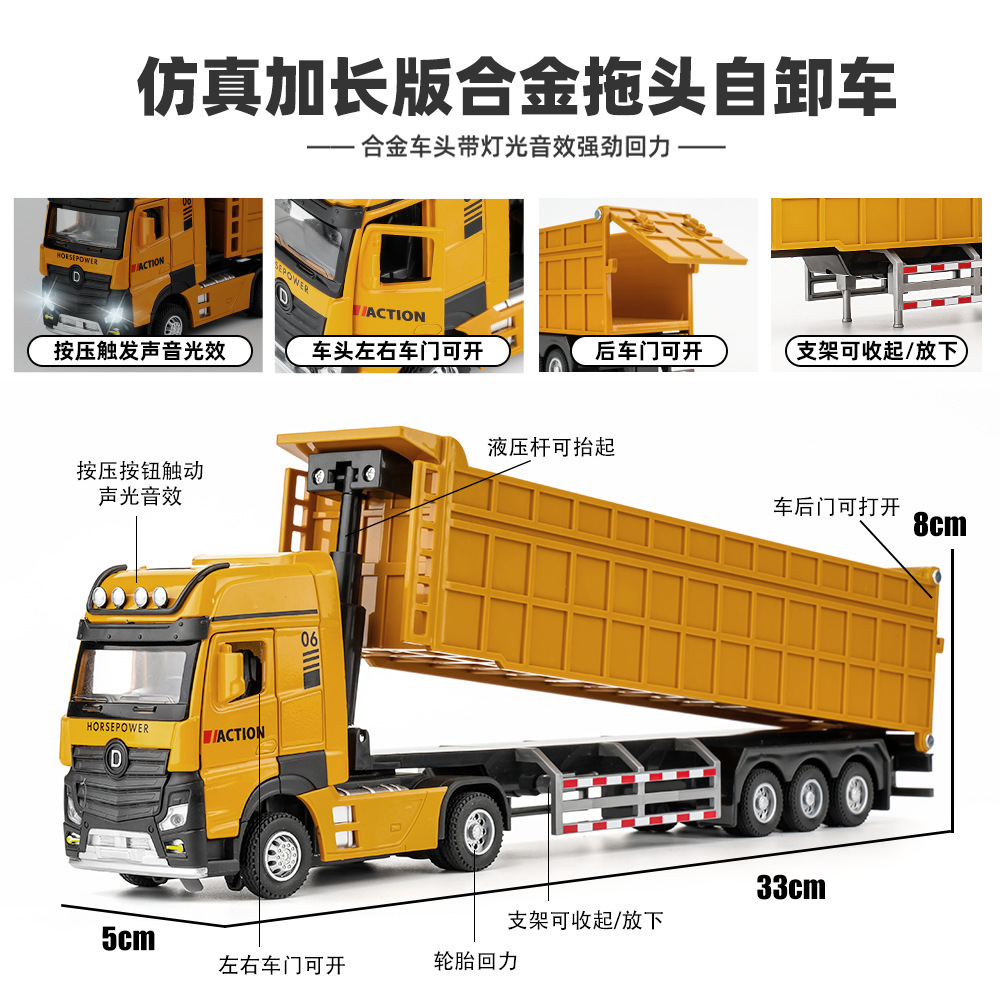 天鹰合金车模1:50自卸加长工程车声光回力玩具车音乐模型摆件藏品