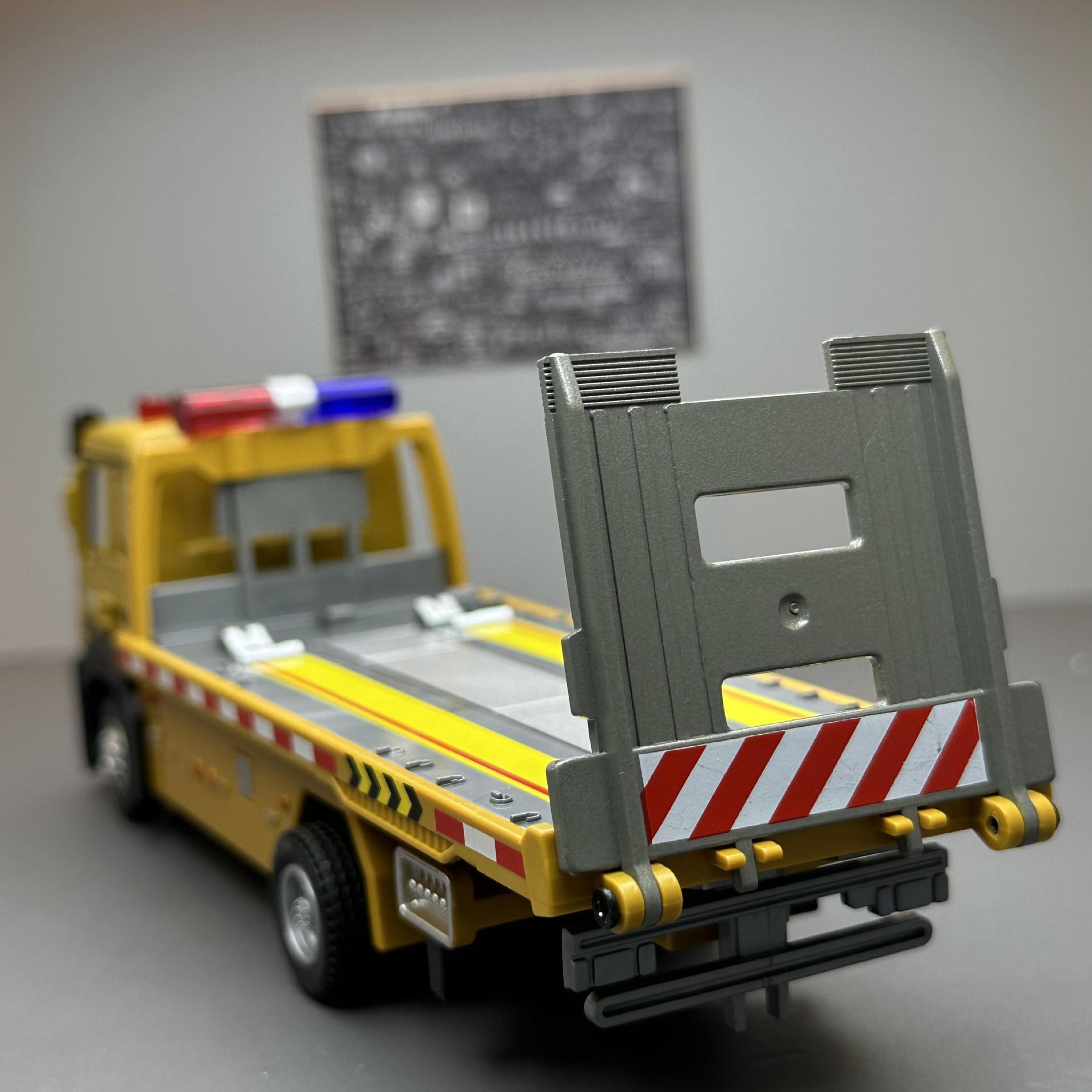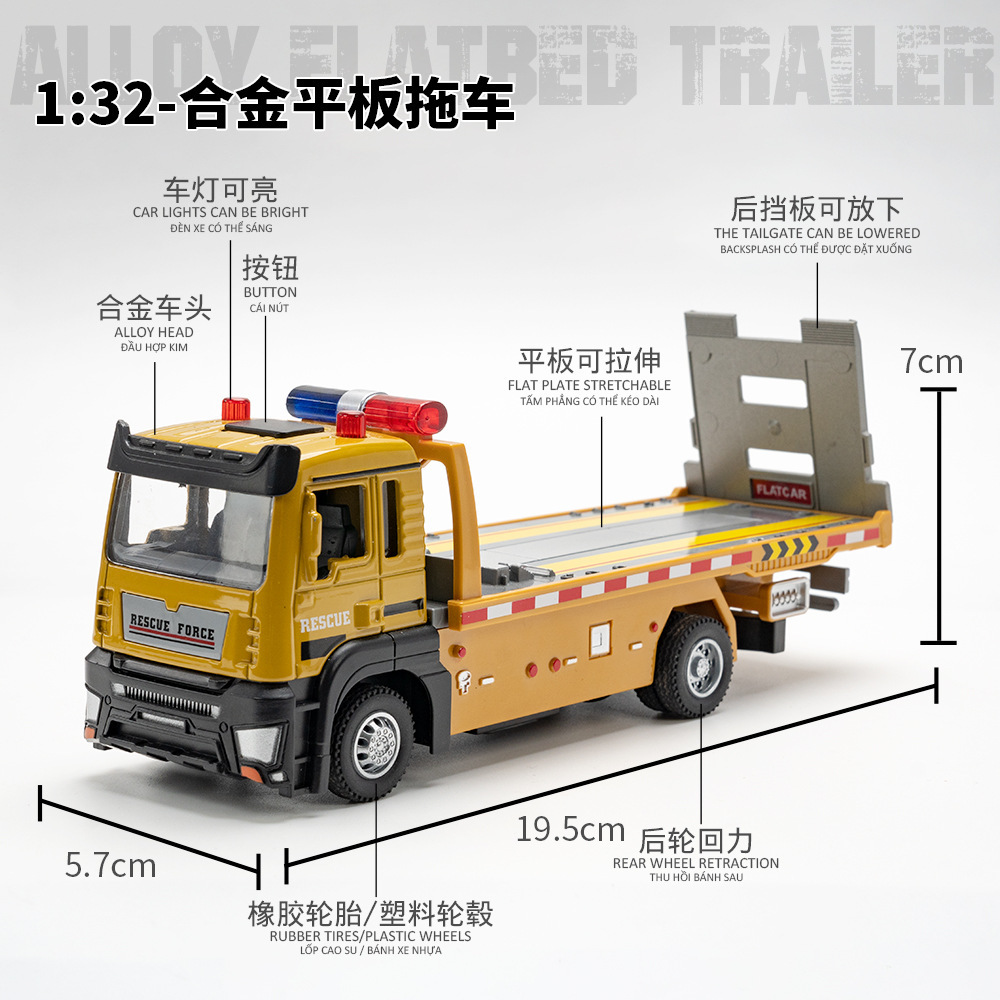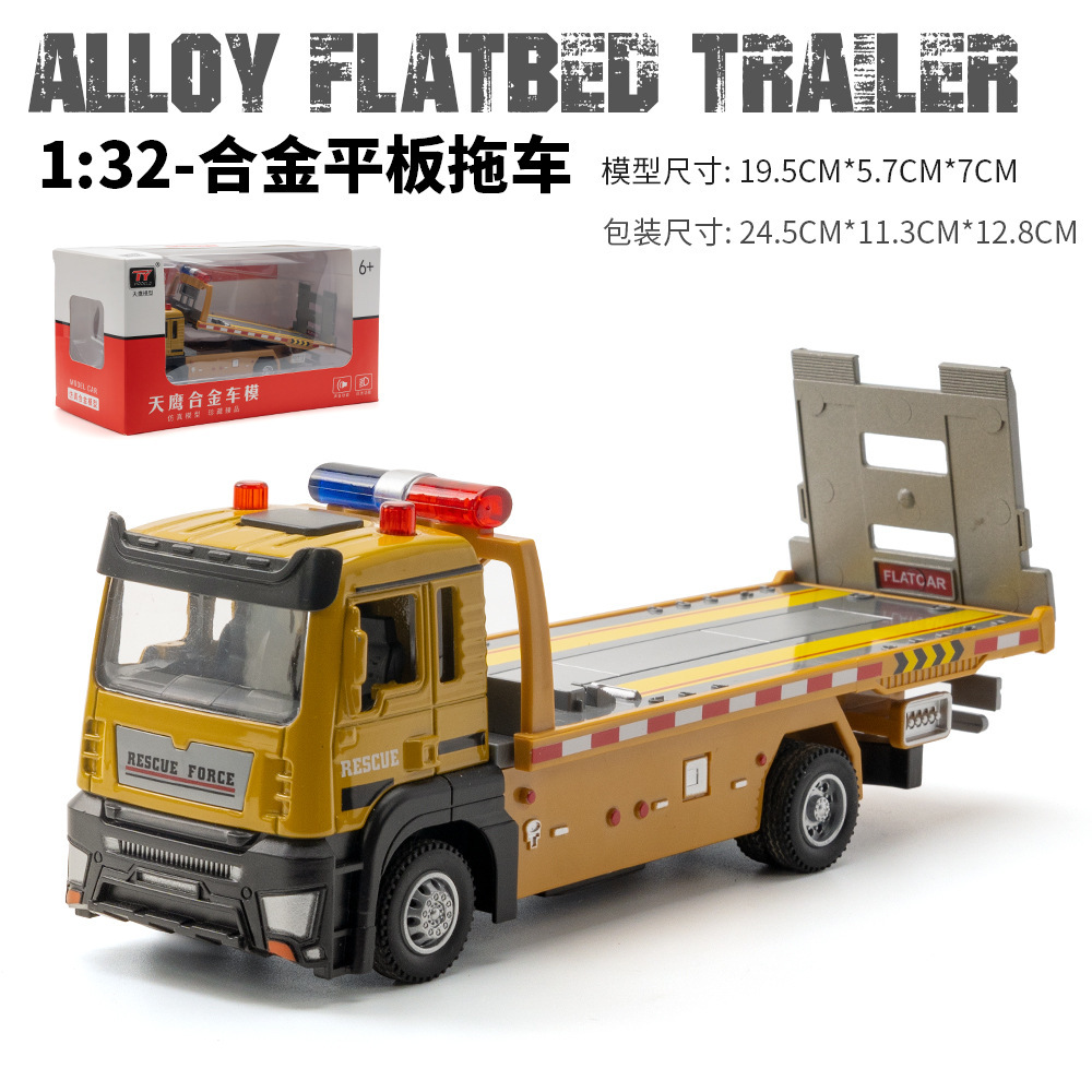 天鹰合金车模1:32平板运输车清障拖车回力发声玩具车音乐模型摆件