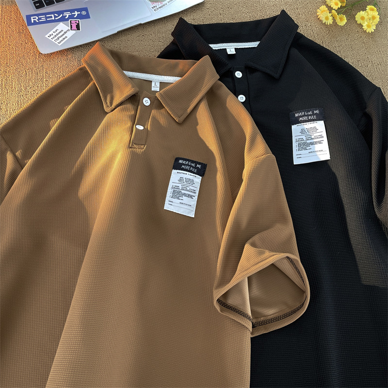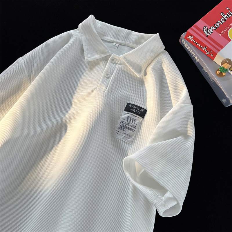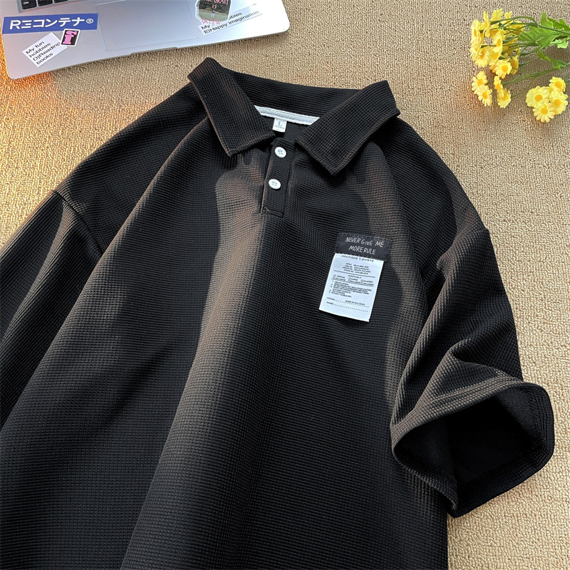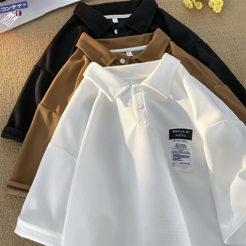男POLO短袖T恤新款短袖T恤翻领华夫格大码宽松男士潮短袖POLO