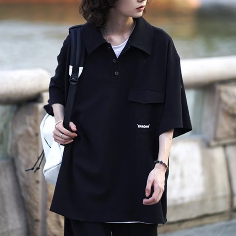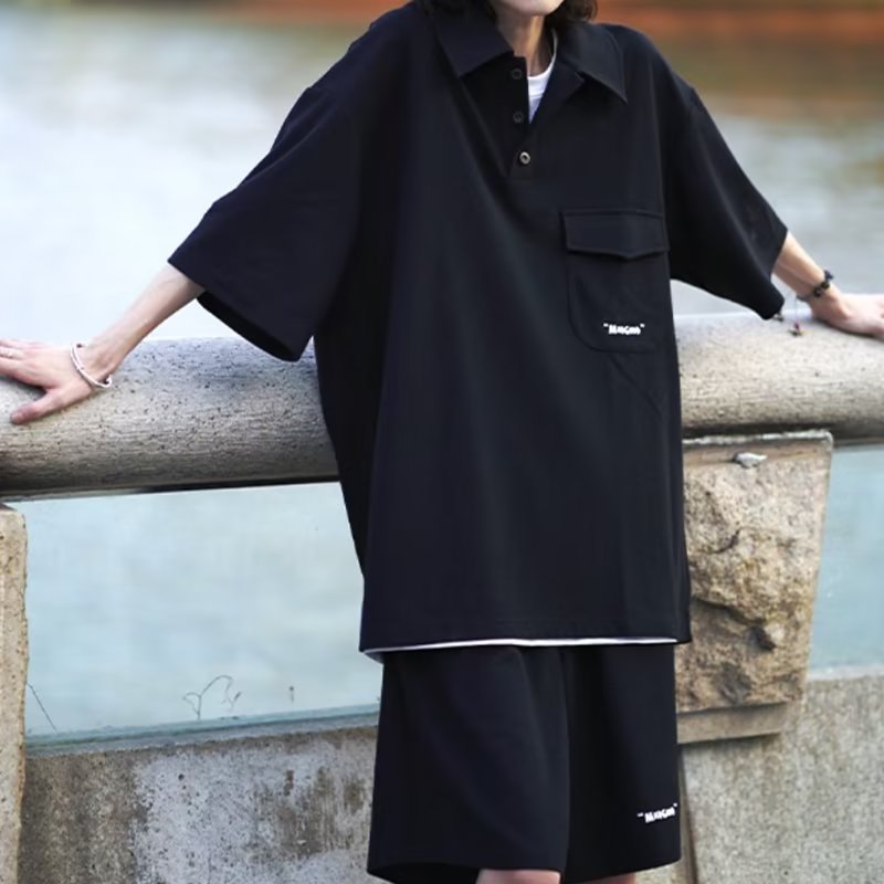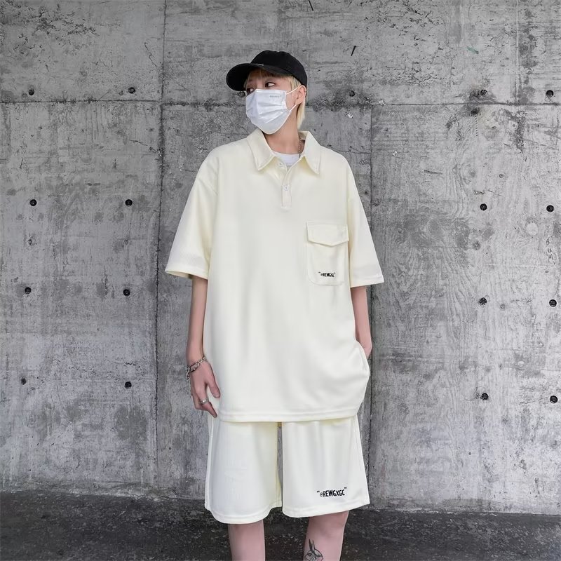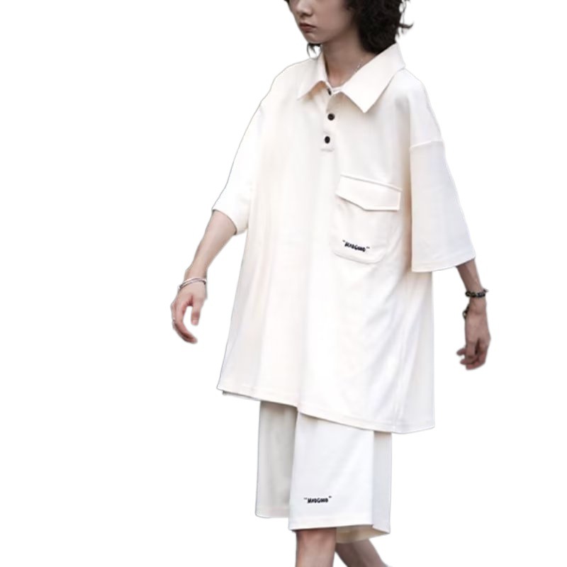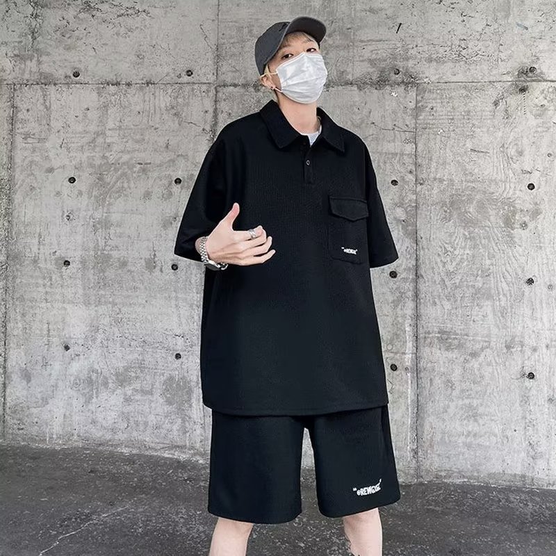 夏季polo衫短袖T恤男士宽松商务休闲潮流翻领半袖衫休闲短裤套装
