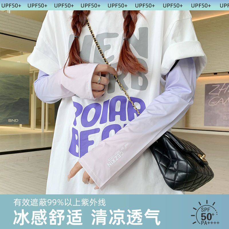 渐变男女宽松大码松紧夏季开车防晒袖套女防紫外线冰袖护臂手袖子