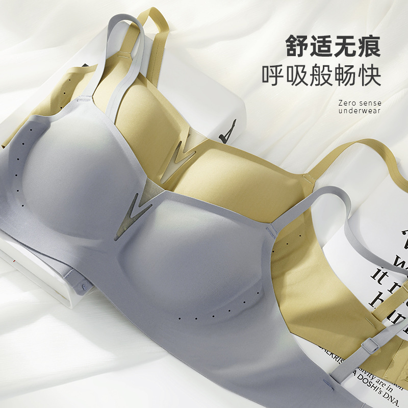 法式大方领女士内衣大胸显小聚拢美背无痕镂空网纱舒适透气文胸