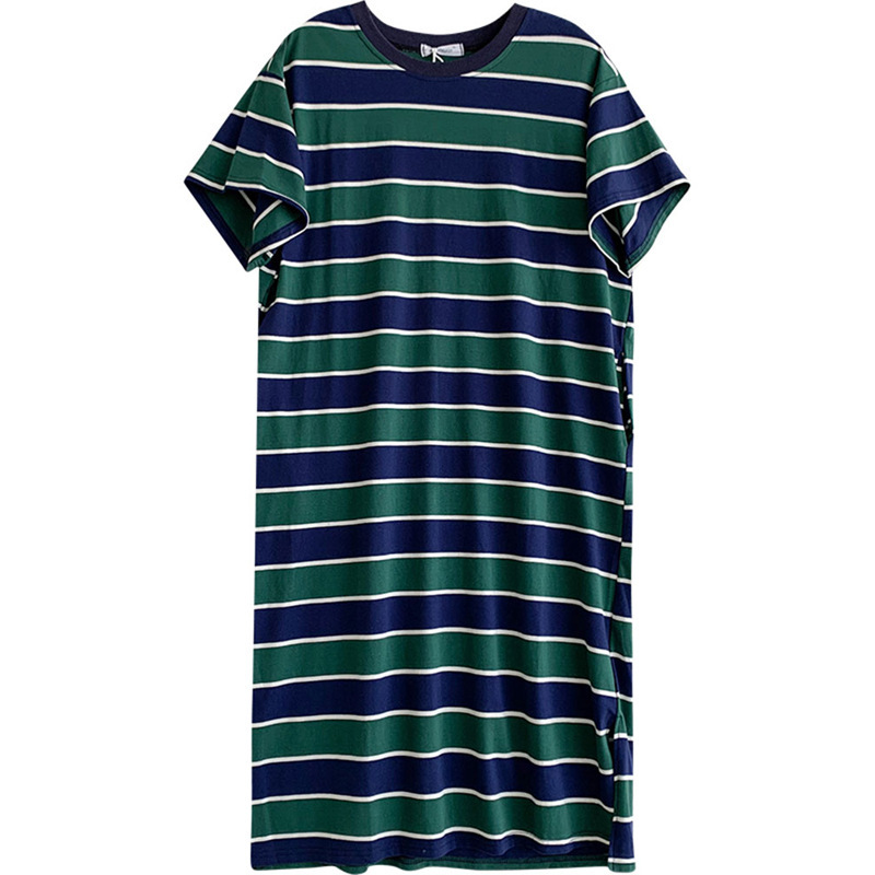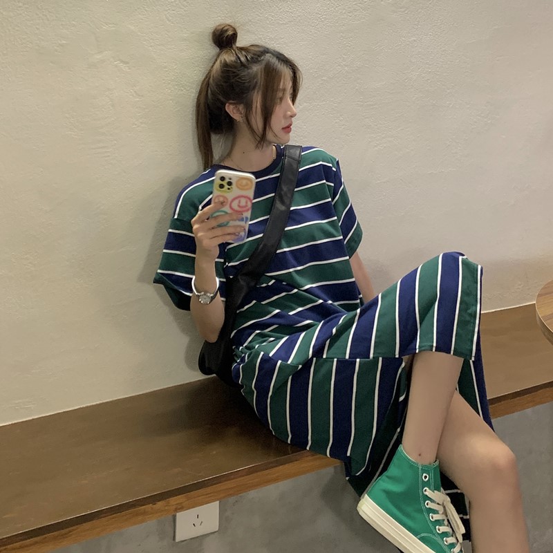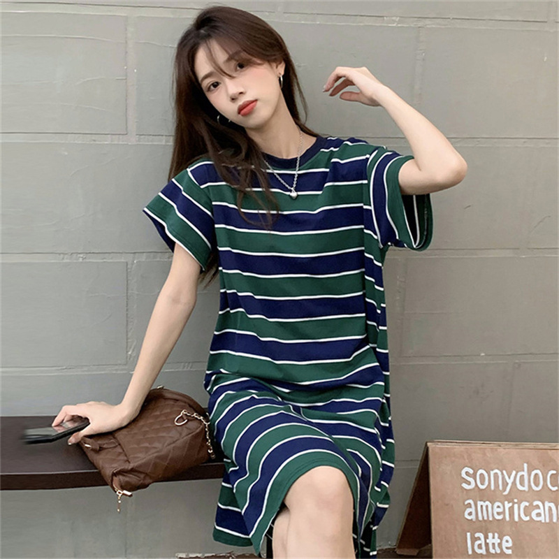 【价值高于价格】韩版宽松条纹短袖连衣裙女夏季纯棉直筒t恤裙潮