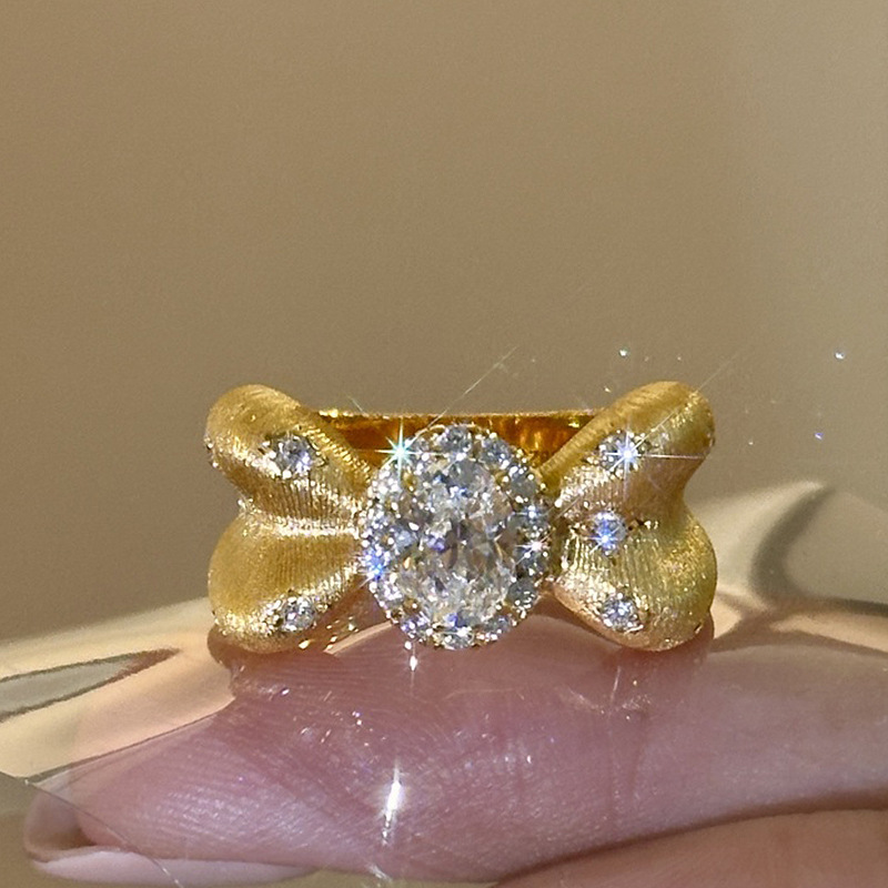 小红书爆款拉丝鸽子蛋戒指2025新款古法金蝴蝶结微镶指环一件代发